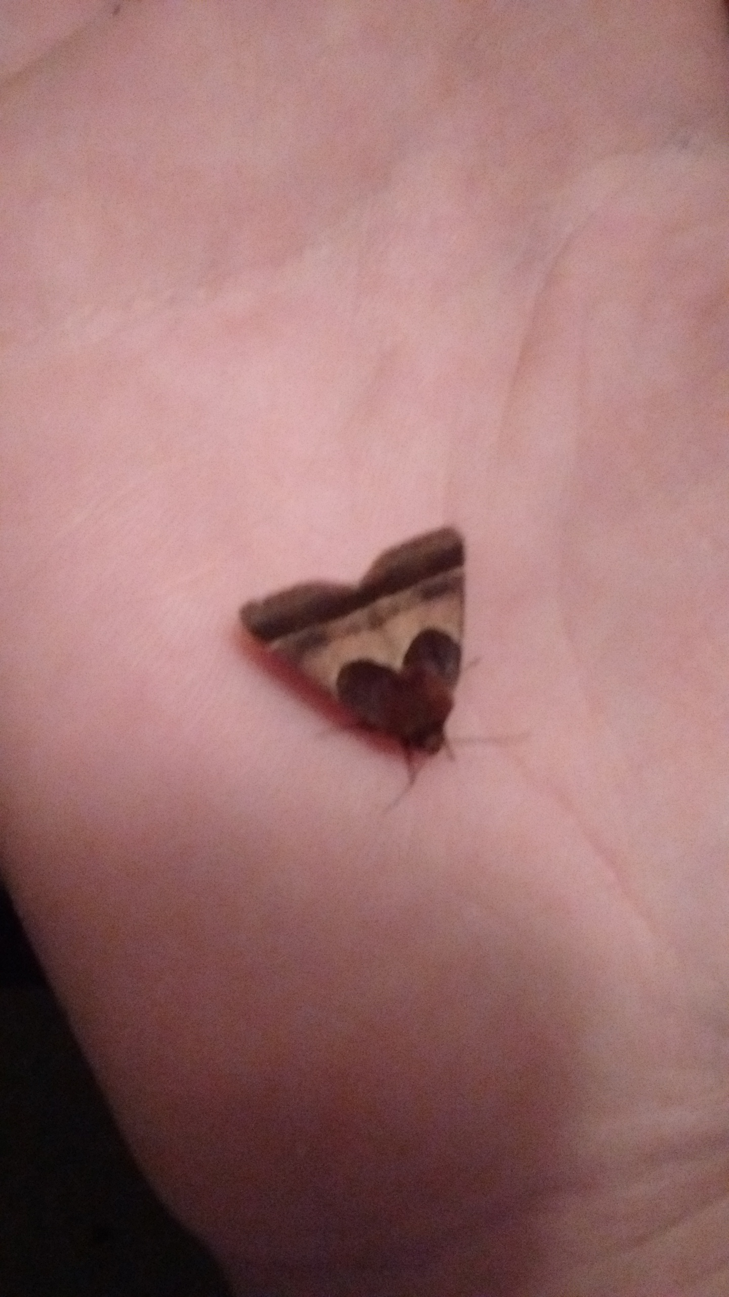 Observation notes: Moth drawn to outside light. It doesn't look quite like an Arcigera Flower Moth, the band at the edge of the forewing doesn't look like the pictures I saw, but I don't know what else it could be.