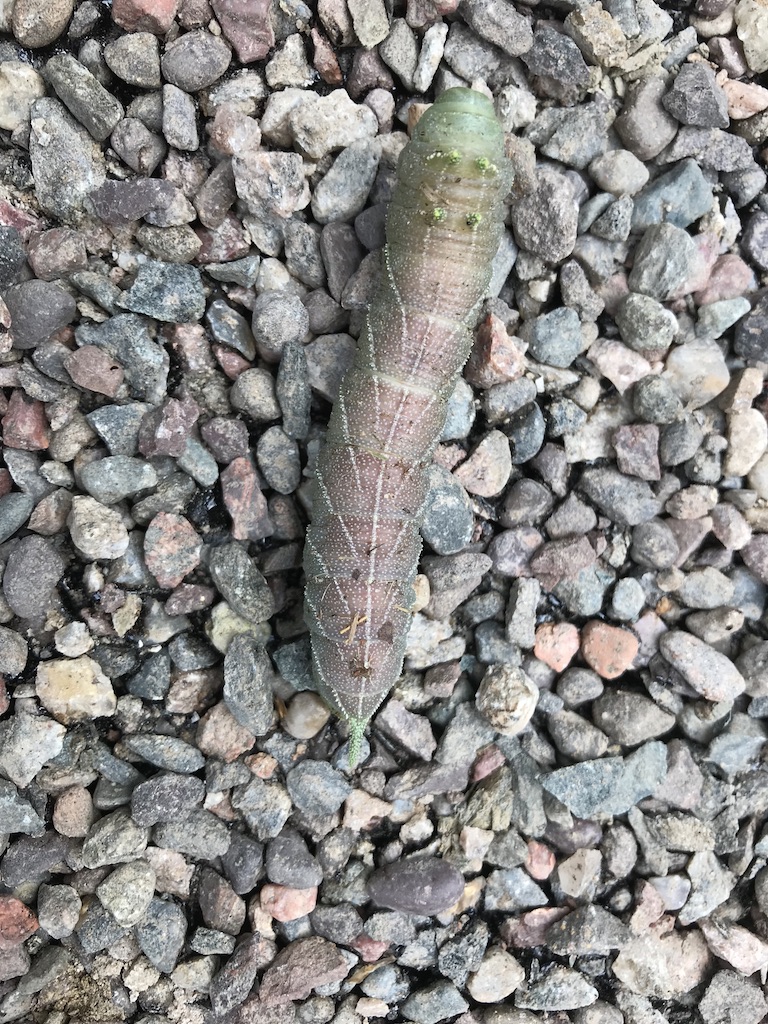 Observation notes: Sorry no scale in pic. Large, long, caterpillar, approximately size and length of an adult index finger. Found it crawling across a gravel roadway.