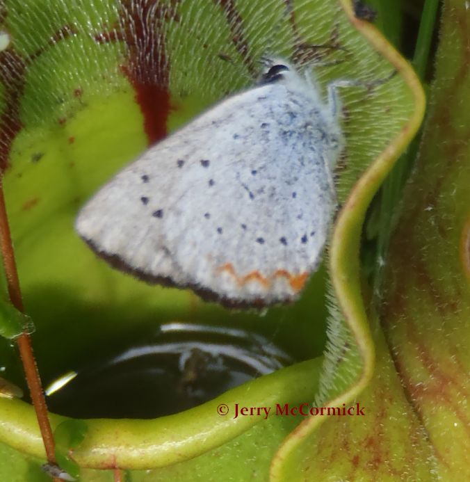 Observation notes: The butterfly apparently was feeding from the pitcher-leaf of a pitcher plant. I opened two of the pitcher-leaves and one contained the remains of another bog copper that apparently lacked caution!