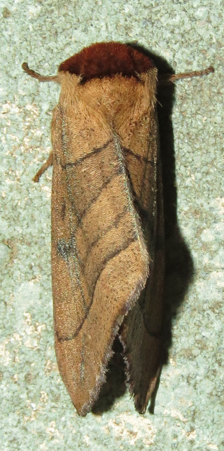 Coordinator notes: I reviewed the Datana species pages on MPG, bugguide.net, and also Peterson's Field Guide to Moths (Beadle and Leckie, 2012) and believe datana angusii is the correct id for the following reasons:
