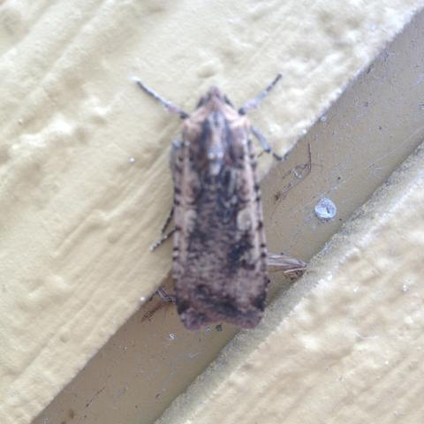 Observation notes: resting in siding groove, quite inactive even when disturbed (it was chilly outside). I have a side-view photo if you need it.