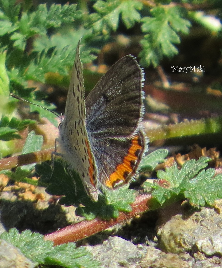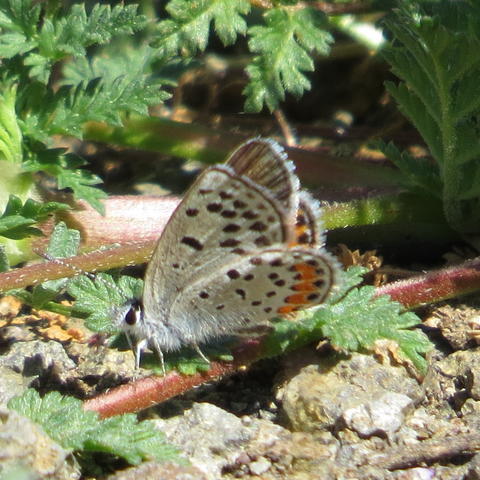 Observation notes: Kept landing on or by red-stemmed filaree, growing by the trail. Butterfly was not very active. Only saw two of these butterflies along the trail. Hot day, temp in 80s.