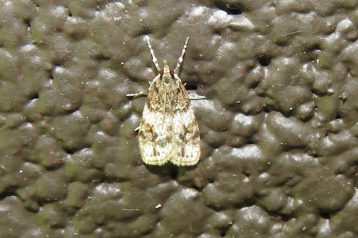 Observation notes: Moth with TL less than 1 cm. Seemed to be day flying. Found on the wall of a storage building in a shady area.
