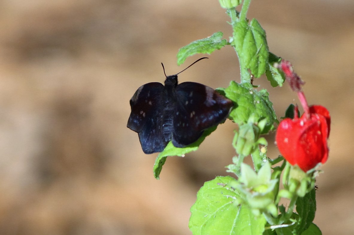 Observation notes: We were planting a native flower flower bed and just after we water this butterfly showed on the Turks cap and also sat on the wet dirt