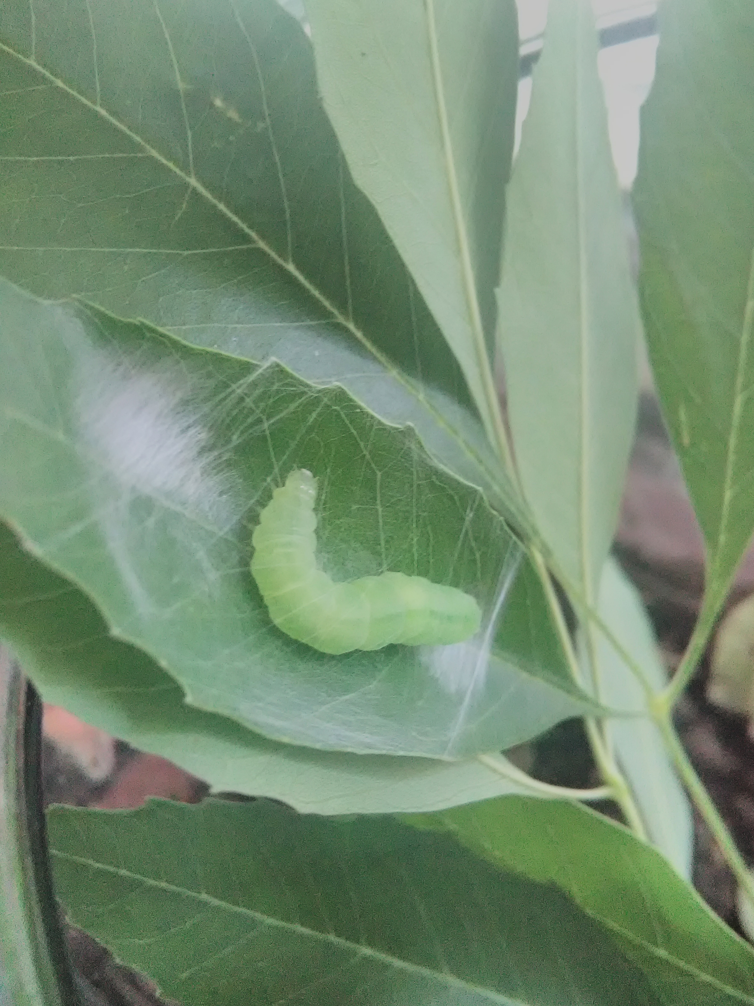 Observation notes: The caterpillar was found on a Snapdragon plant within an area that received partial shade. There was obvious tearing and holes in the plant's leaves, most likely caused by caterpillar. It was taken into captivity the day of discovery; fed upon Snapdragon and unidentified tree leaves. Constructed cocoon within leaf two days later (July 6, 2017). Cocoon was a thorough lime color with few brown stripes until later days where it started turning brown. Emerged from cocoon nine days later (July 15, 2017) and will be released at dusk in same area of host plants.