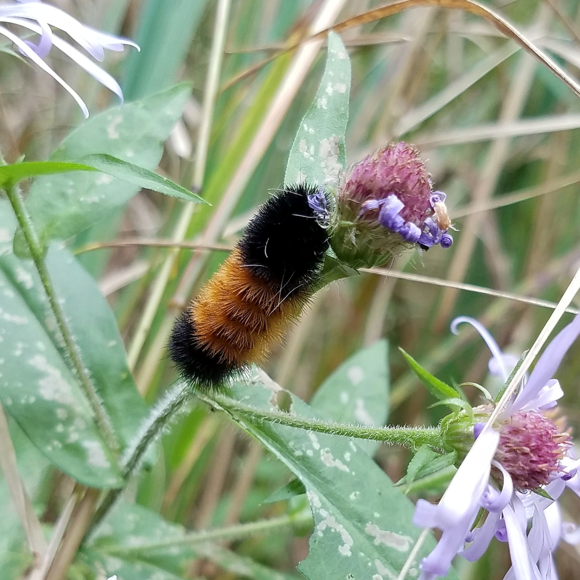 Observation notes: Observed eating flowering parts of swamp aster (Aster puniceus) near edge of shrub carr/sedge meadow and mixed coniferous/deciduous forest. Partly cloudy day but mild.