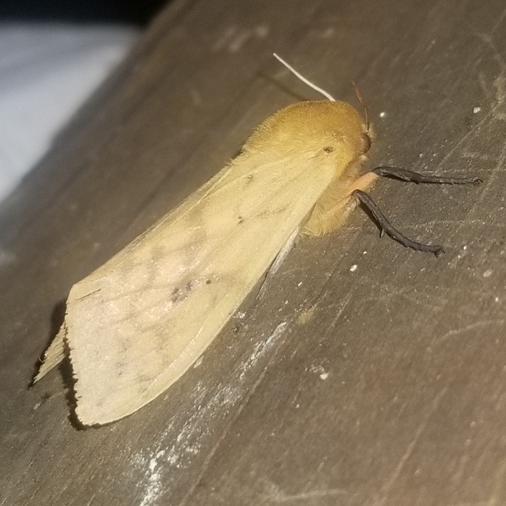 Observation notes: Flew in to rest on a roof truss/joist beam near a porch light.