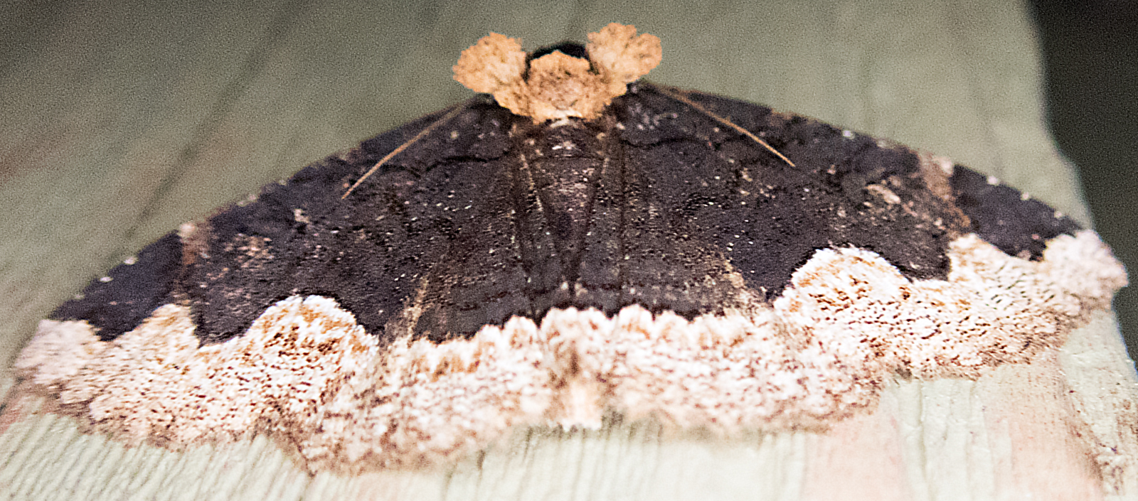Observation notes: Taken from behind the moth to show the 3 cinnamon tufts on the head.