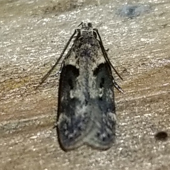 Observation notes: Fluttered by and landed to rest on a roof truss/joist beam near a porch light.