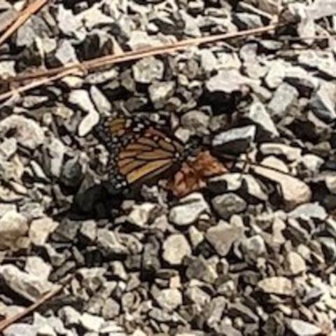Observation notes: Was flying near flowers but couldn't get picture of it open winged. Typical Alabama day, hot and humid slightly overcast. I have milkweed planted to attract them.