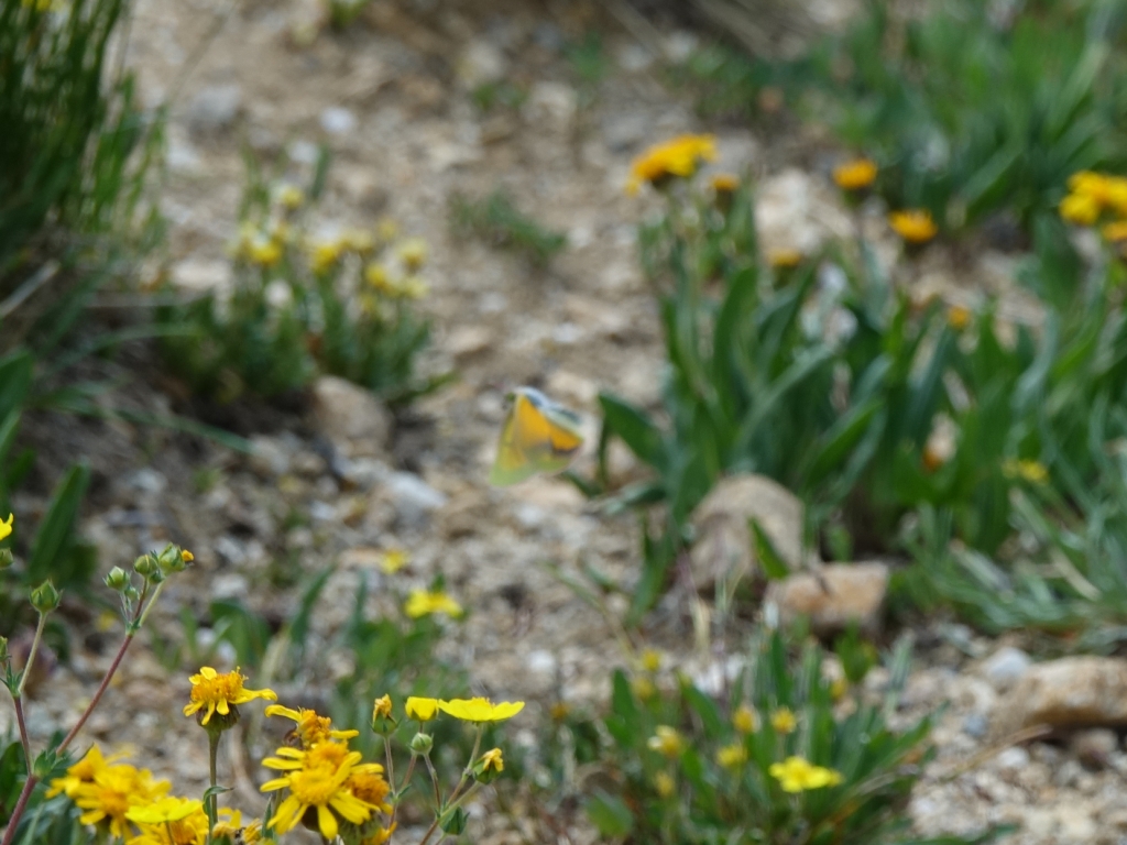 Coordinator notes: Correct identification, a male Mead's Sulphur. This is the most frequently occurring sulphur above treeline in the mountains of Colorado, though all Colias sp. sulphurs can be seen in the alpine at least sometimes.