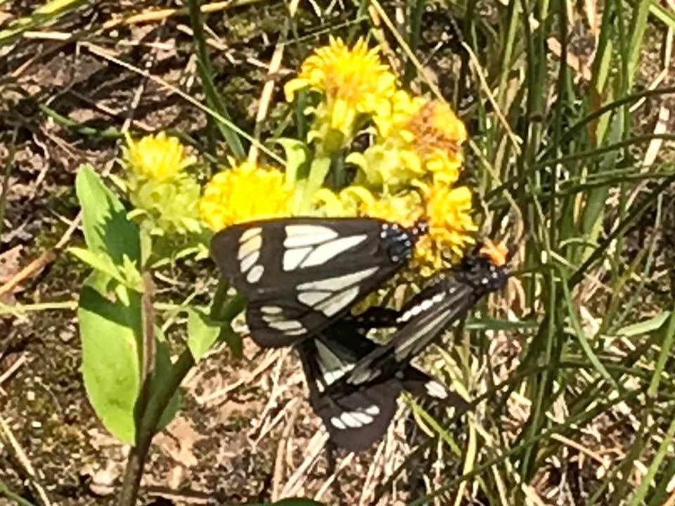 Observation notes: Time: ~12:00 p.m. Habitat: Dense pine forests, narrow gorges with towering rock formations, and meadows lined with aspen trees. Notes: Three of these day-flying moths were avidly nectaring at yellow flowers, as seen in the picture.