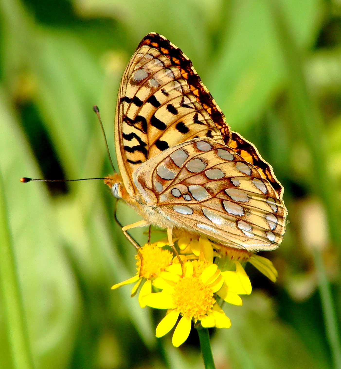 Coordinator notes: Yes Tim! That is a good Colorado Zerene Fritillary. Looks like the disc on the underside with the silver spots is mostly brownish. They run brown to green in many places in western Colorado, some blended - very attractively. Mike