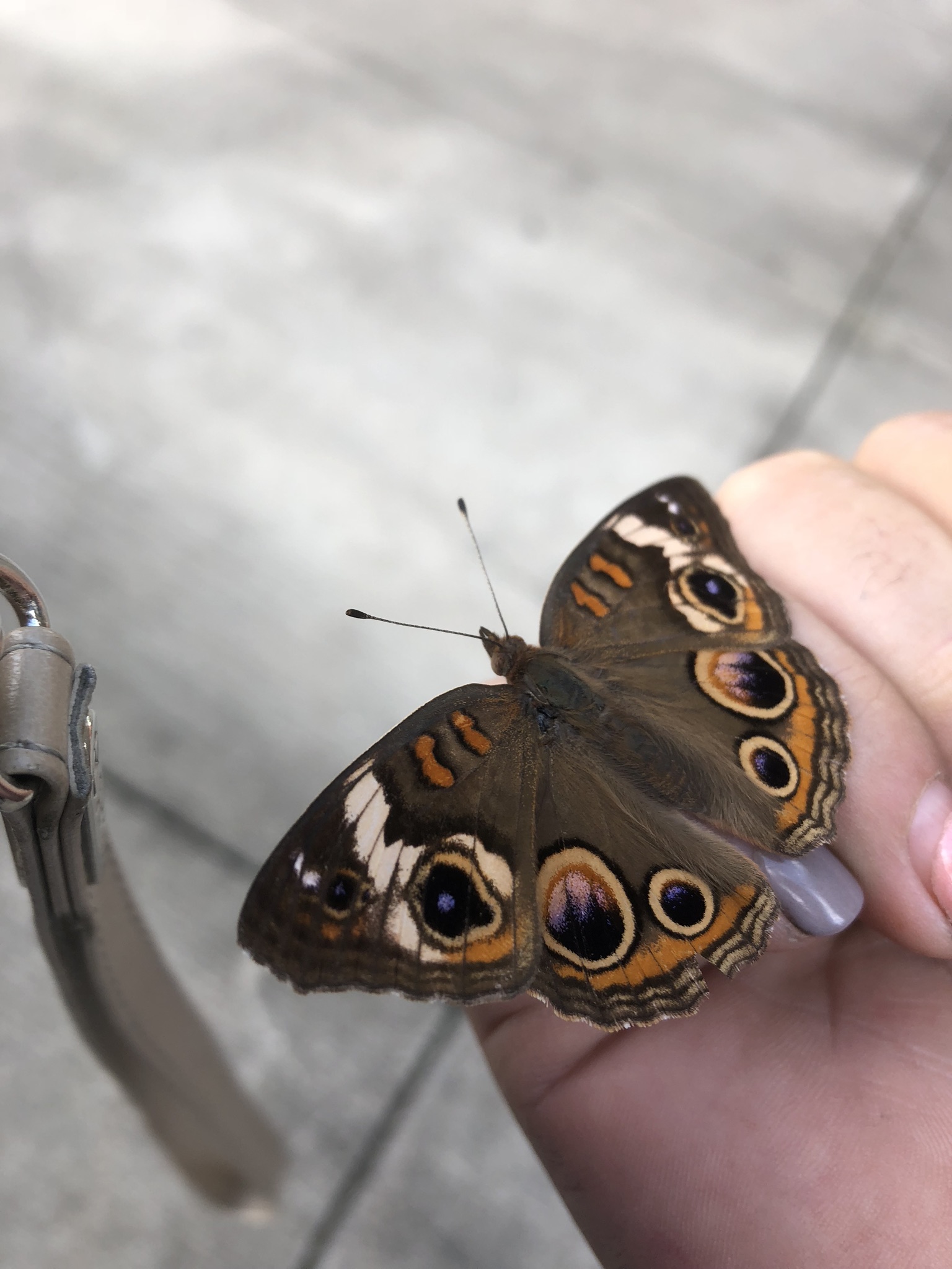 Observation notes: Very windy. A little chilly. Butterfly was in a driveway at my school and allowed me to pick it up. Assuming it was unable to fly, brought back to my house where he flew away and returned 2 days later. He allowed me to pick him up again and then flew away.