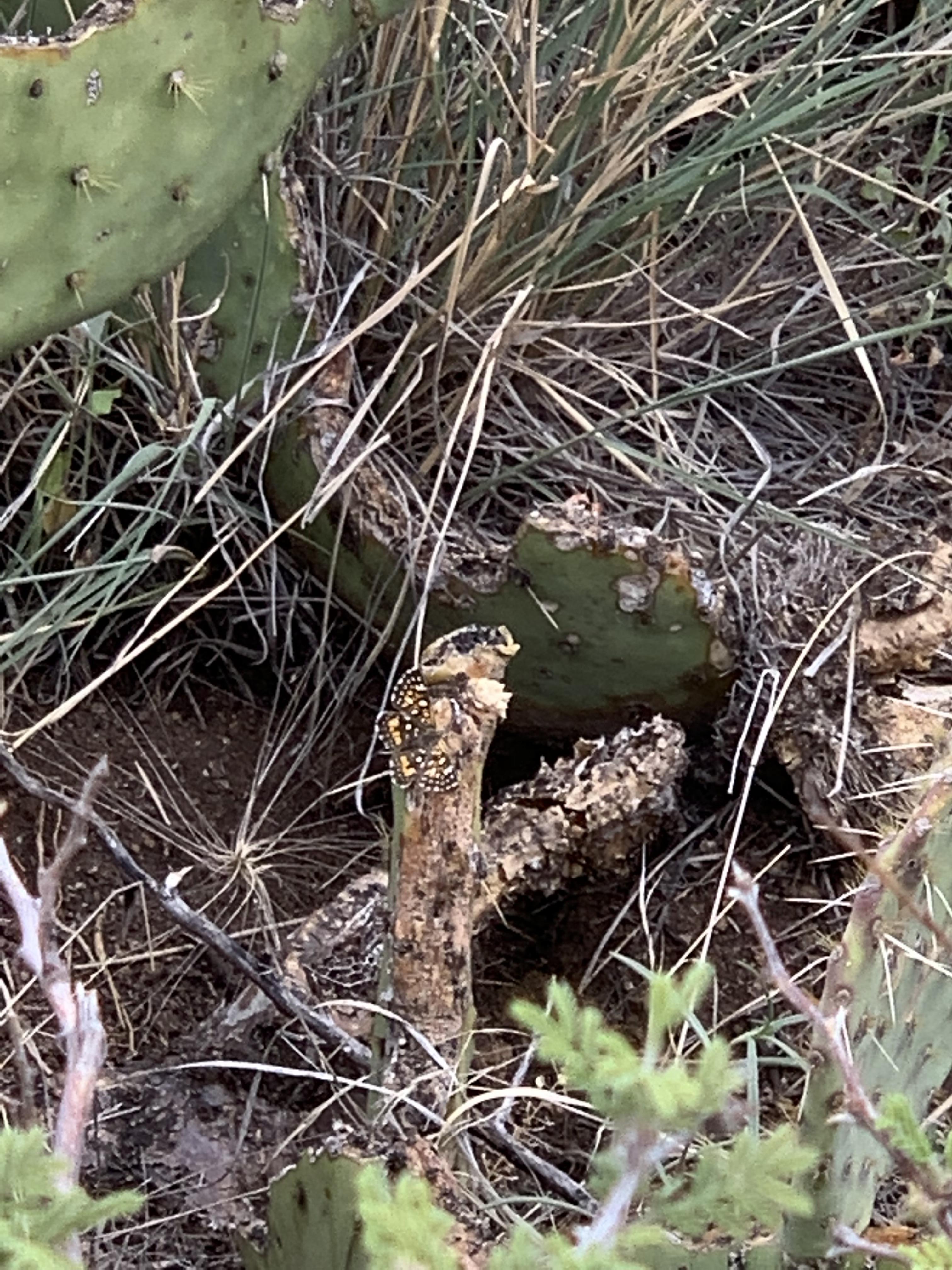 Observation notes: Perched on Cactus in Texas Springs Canyon. Partly cloudy day in the 80’s F.