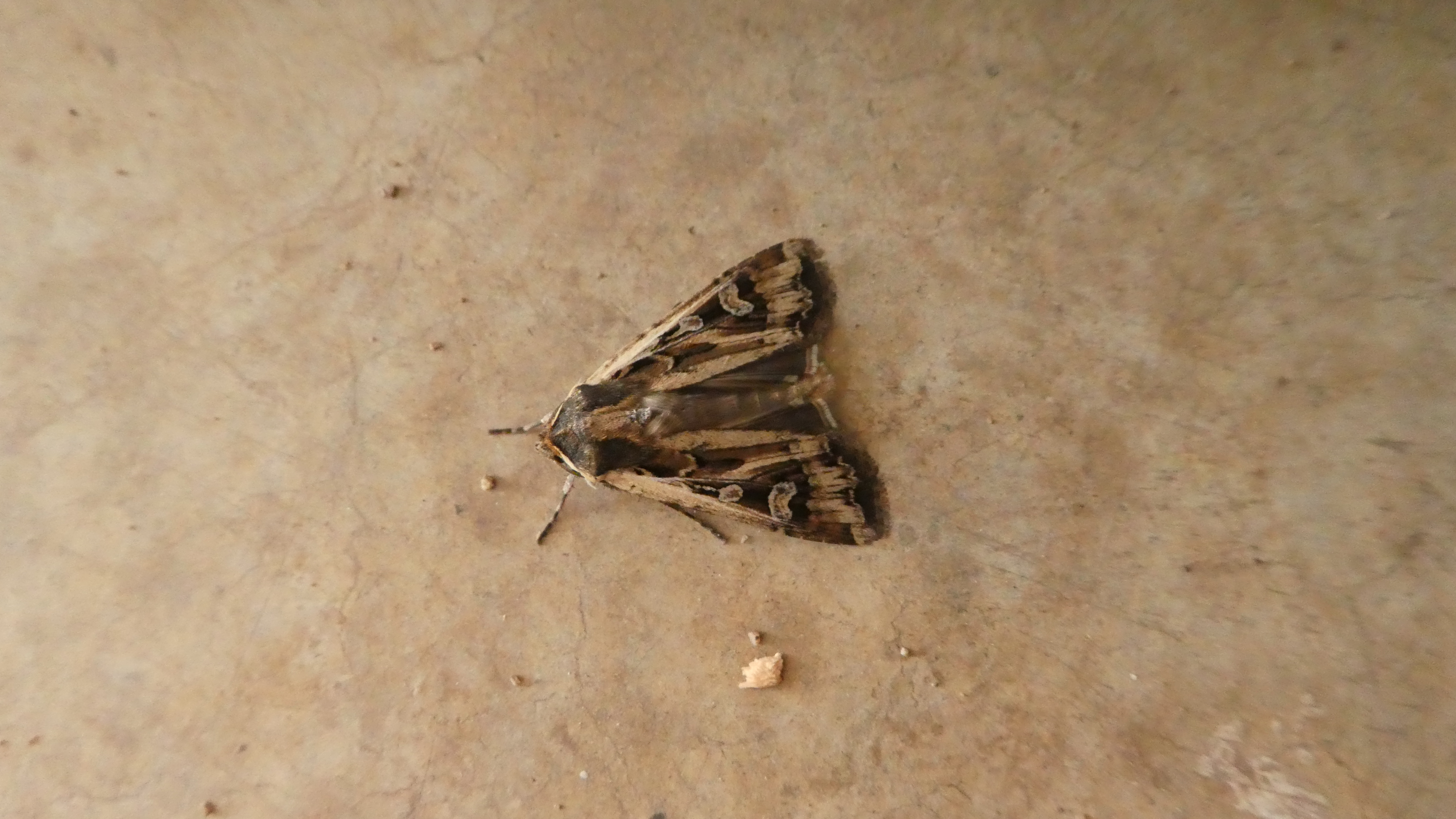 Observation notes: Found inside the garage on the concrete floor. This moth was mostly at rest, though when approached crawled under the dryer. The garage has some windows, so the lighting at that time of day is generally low but good enough to see without turning on any lights.