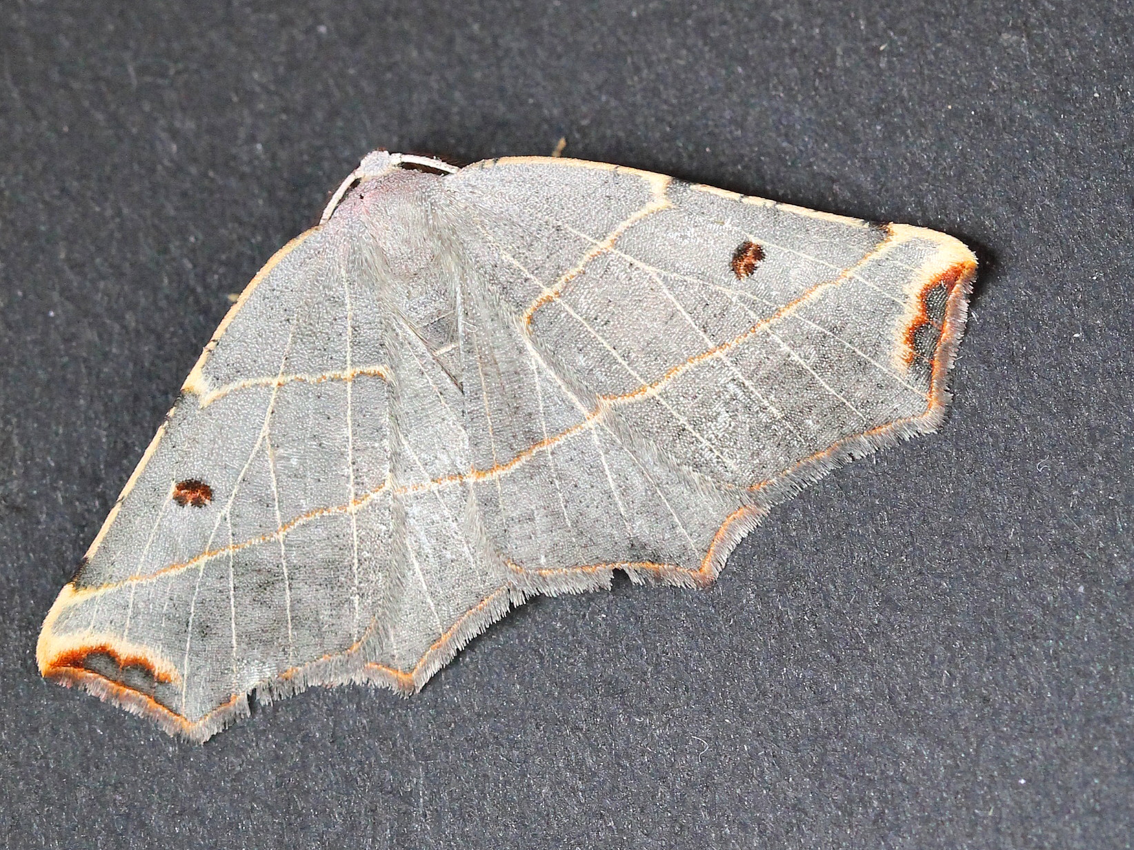 Observation notes: Wingspan 33 mm. Edge of a gravel forestry road where it crosses a slope bisecting a parkland-like landscape. Both up and down slope are meadows with a diverse flora interspersed with forest. Attracted to a fluorescent UV lamp set up between 10:00 pm and 12:00 am.