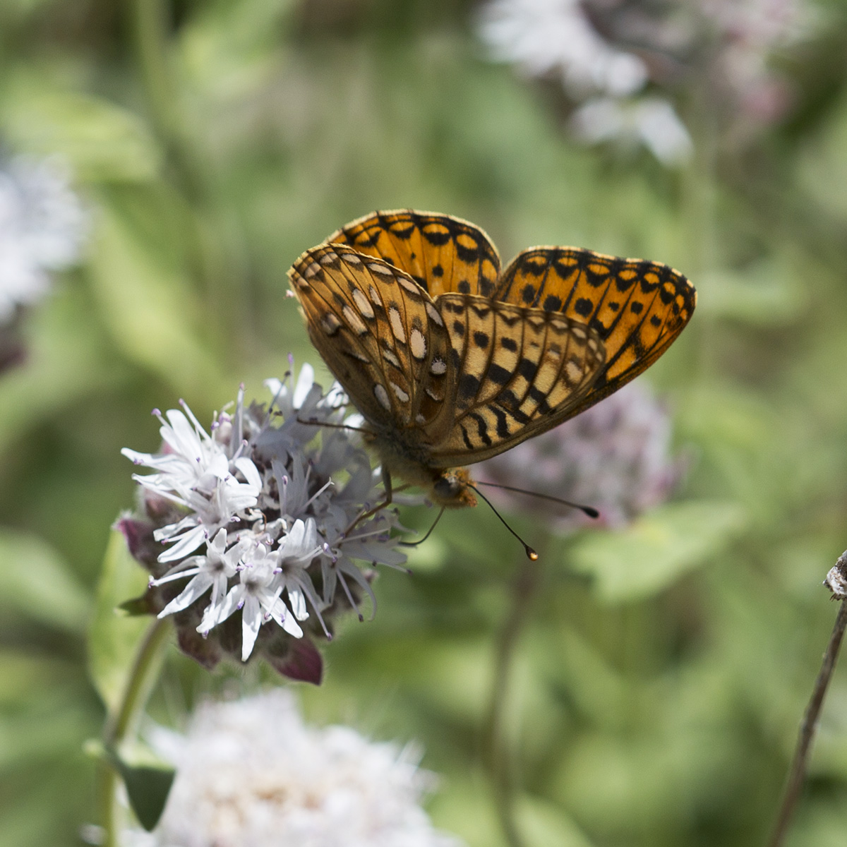 Observation notes: Seen nectaring on mints not far in on the trail. It lingered long enough for me to get a few photos, then left the area. Photos are of a single specimen.