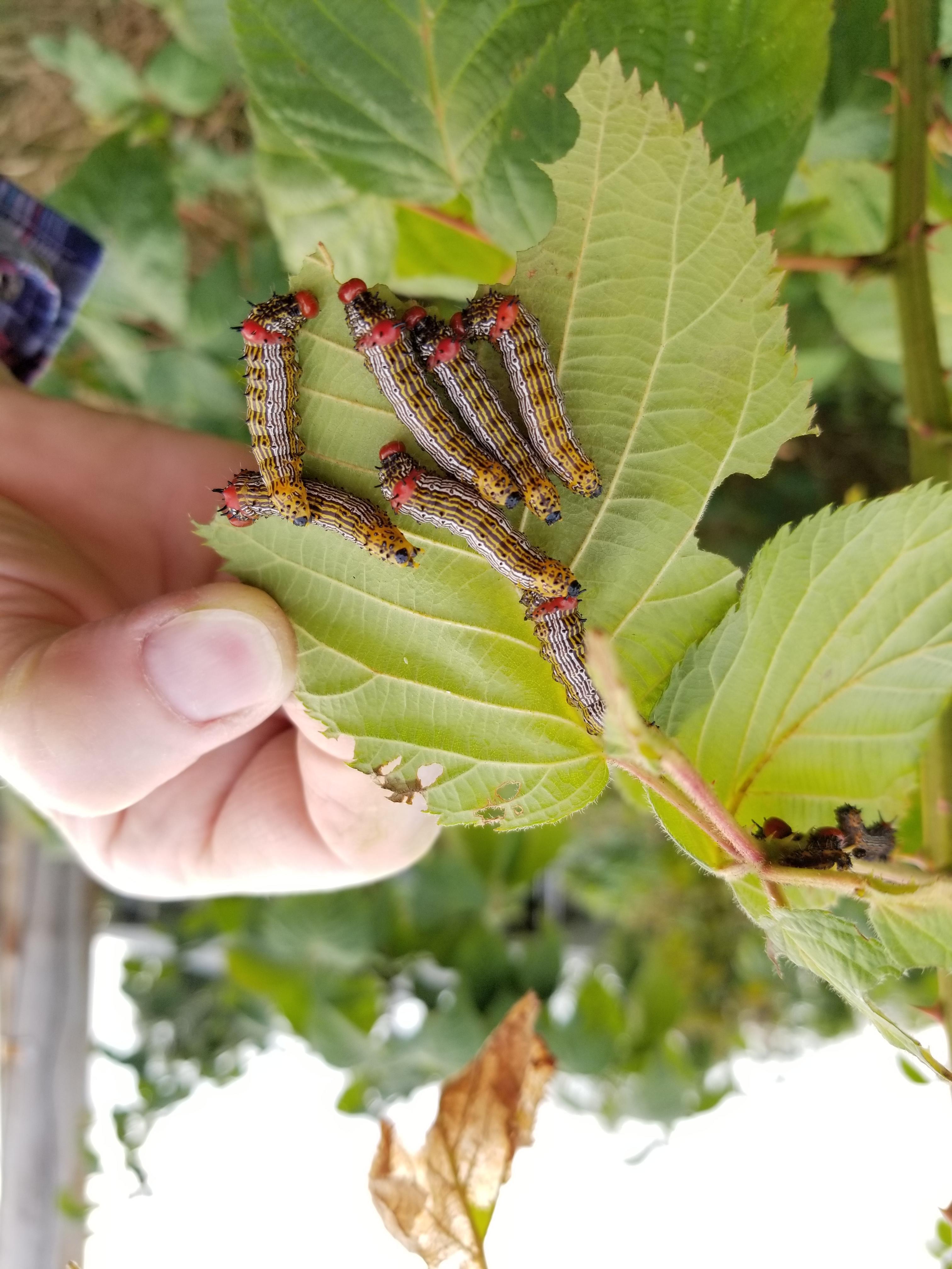 Observation notes: On a blackberry bush. Found 3 individual groups. Each group was on a it's own plant. And each group was at a different stage of growth