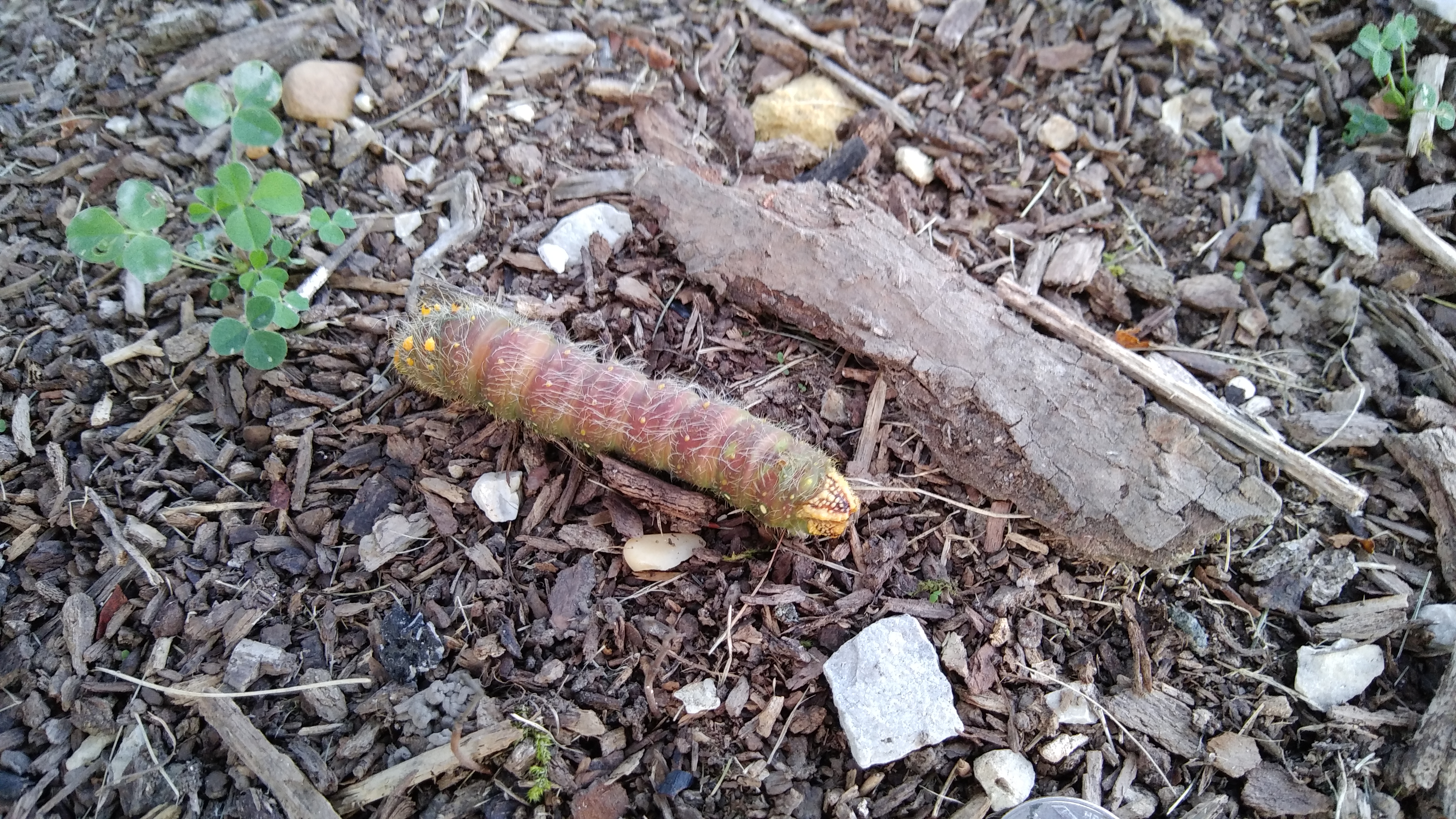 Observation notes: Found under an arborvitae tree. Sunny conditions, temp in low 70's. Put quarter on ground in pictures for size reference.
