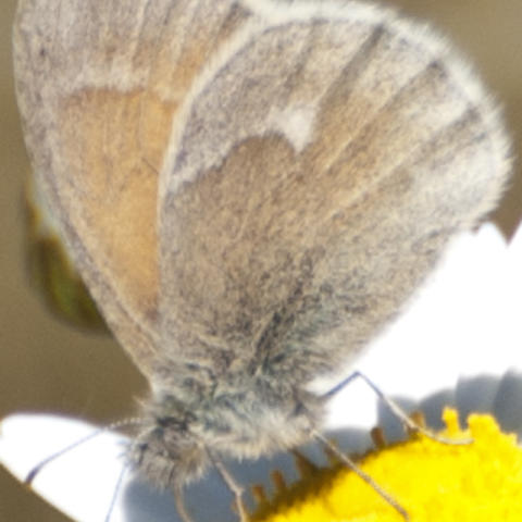 Observation notes: USA, Oregon, Multnomah County, City of Fairview, Salish Ponds public park. Clear, sunny. Nectaring on Oxeye daisy. Hot day, over 90 degrees f at the time I took the photo. Numerous Ringlets flying low over grass, some appeared to be patrolling a territory.