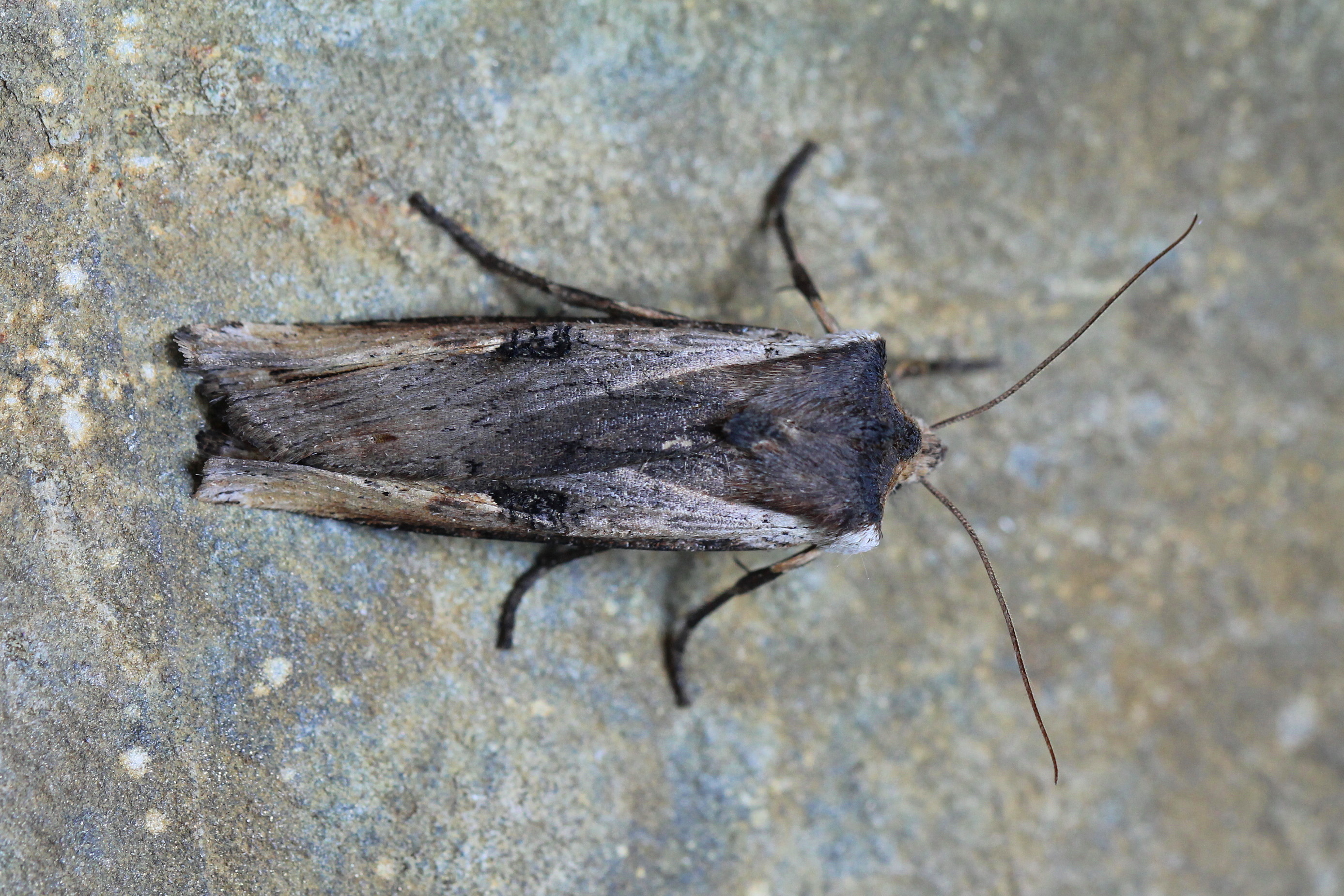 Observation notes: Length 26 mm. Fluorescent UV light set up from 9:00 pm till 11:00 pm. Dirt road through closed canopy Douglas-fir forest with understory of maple (Acer glabrum).