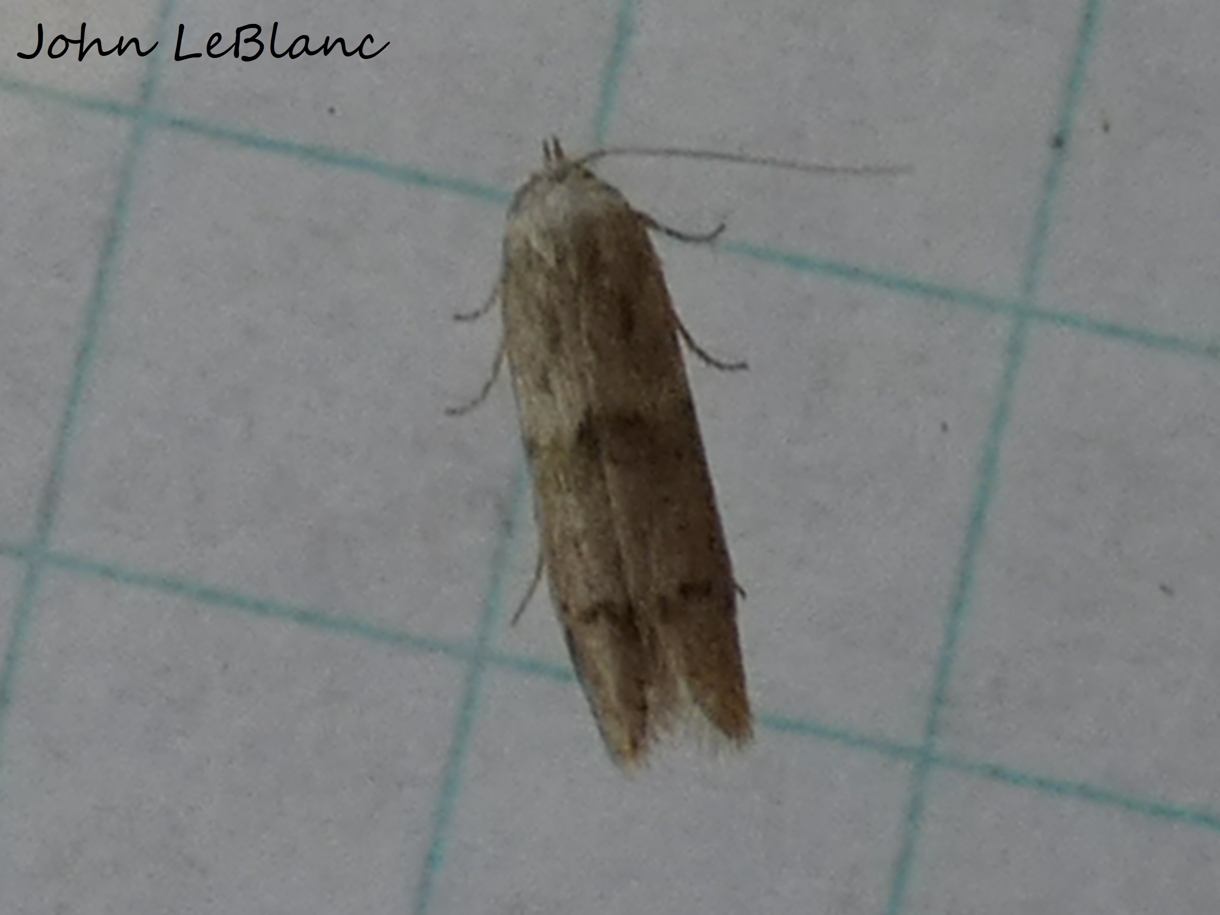 Coordinator notes: This is probably Blastobasis galndulella but experts on Blastobasidae regret that in their opinion very few in the family can be identified with a photo and to make matters worse, there are dozens, maybe hundreds of undescribed species in North America. So while a number of records in the BAMONA database have been accepted as B. glandulella. Even these may be misidentified because there are several species that look like it.