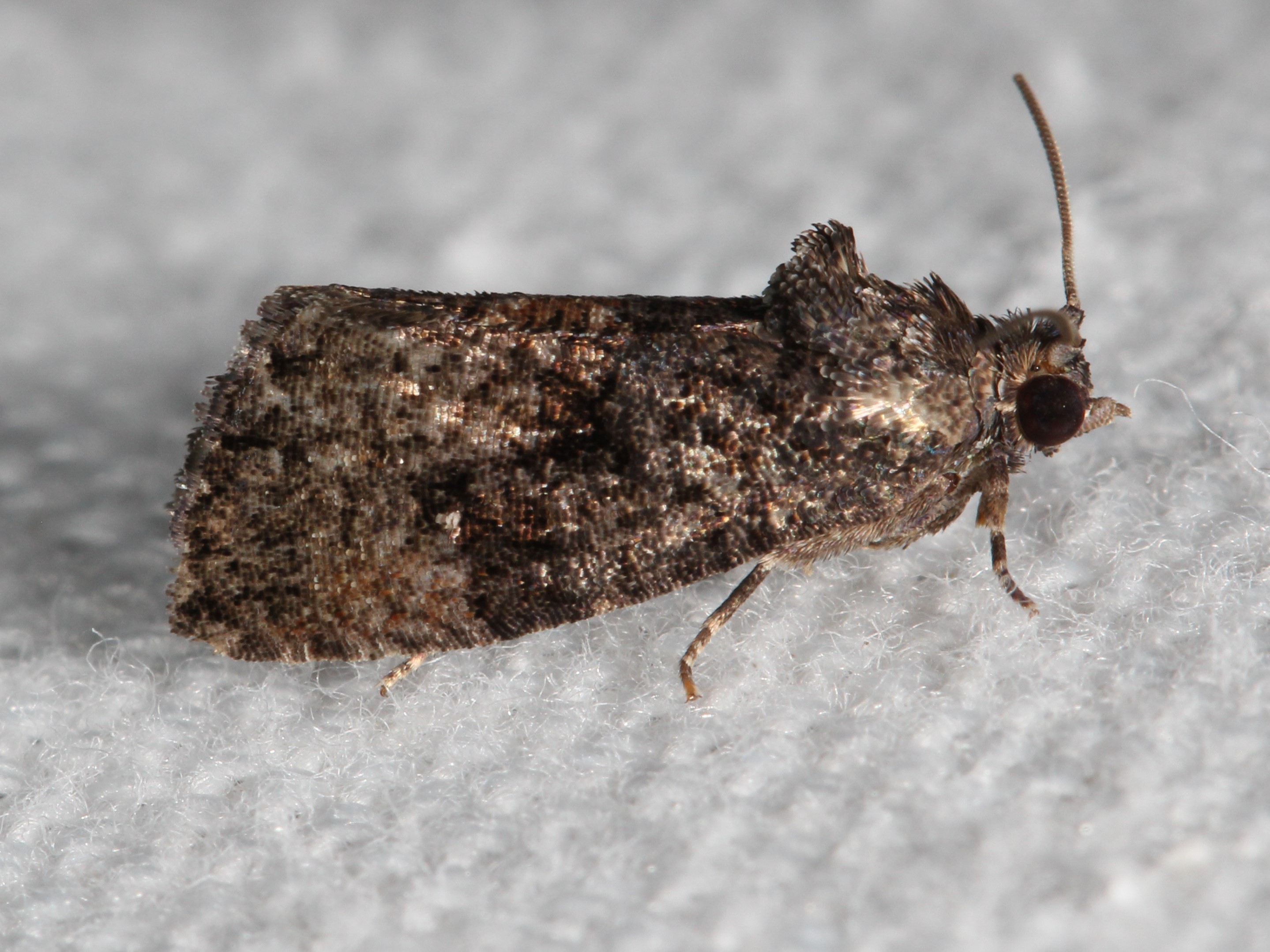 Observation notes: Attracted to MV lamp set up at dead end road at margin of mature forest including Ailanthus, spicebush, Sassafras, and tulip poplar. Apparent body length of 11 mm.