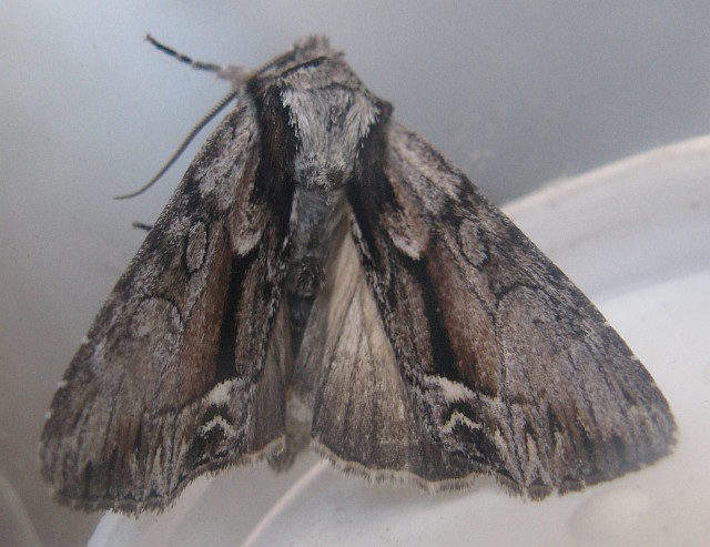 Observation notes: Found this moth hiding between a post and a picket on my fence.
