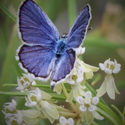 Observation notes: Blues nectaring from horsetail/whorled milkweed flowers along the Rio Grande on sunny, hot days; late in the flowering season. Same milkweed stand on 2 visits on different days.