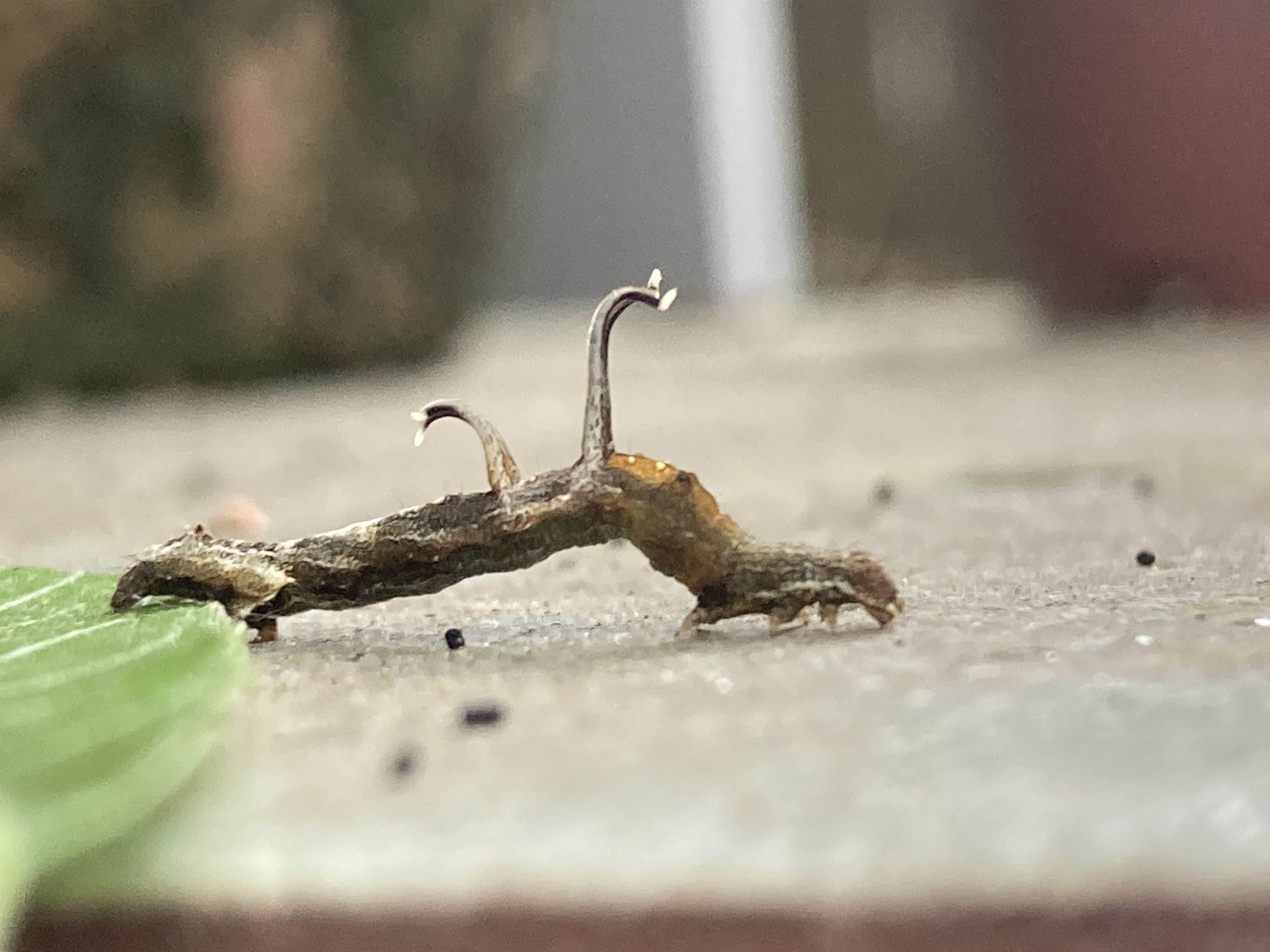 Observation notes: Seen eating leaves on potted willow tree. Sighting occurred just prior to a thunderstorm.