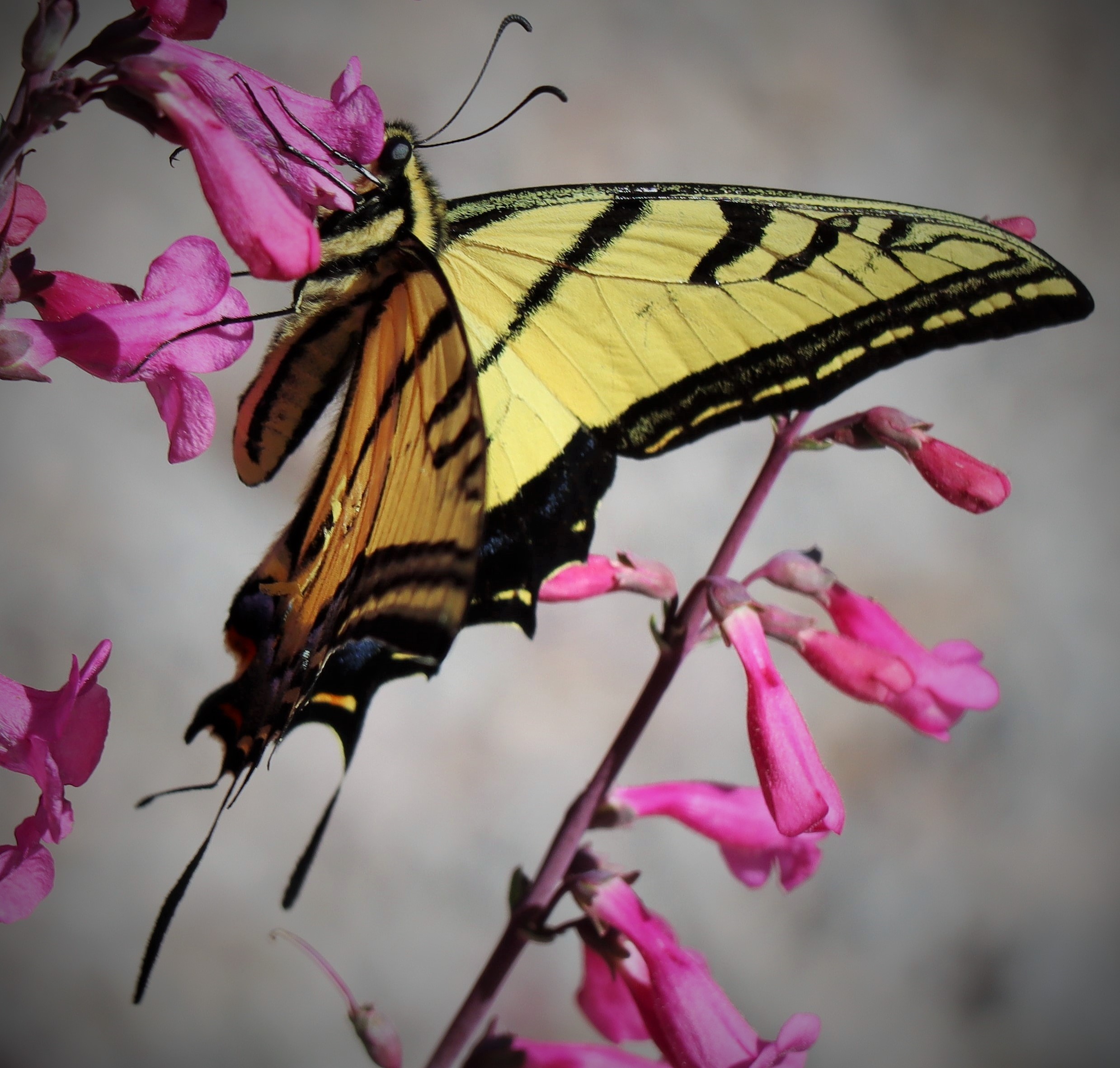 Observation notes: Individual swallowtail taking nectar from scarlet hedge-nettle flowers on plantings in front of the Dripping Springs Visitor Center, Organ Mountains. The afternoon was warm, breezy, and under full sunshine.