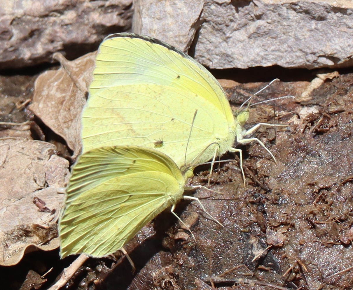 Observation notes: A pair (2 of 3) yellows taking nutrients, nectar, and performing courtship displays at the head of Soledad Canyon, mid-slope of the Organ Mountains. They spent time on moist soil with dappled shade, at the shallow water of the seep, and nectaring from pepperweed (white mustard) flowers. The early afternoon was hot, mostly sunny, and with moderate wind gusts occasionally blowing up-canyon.