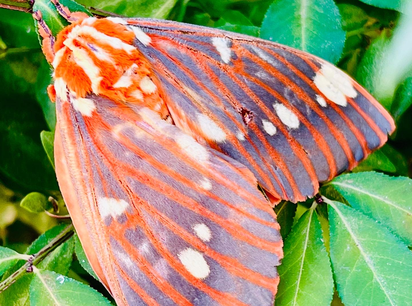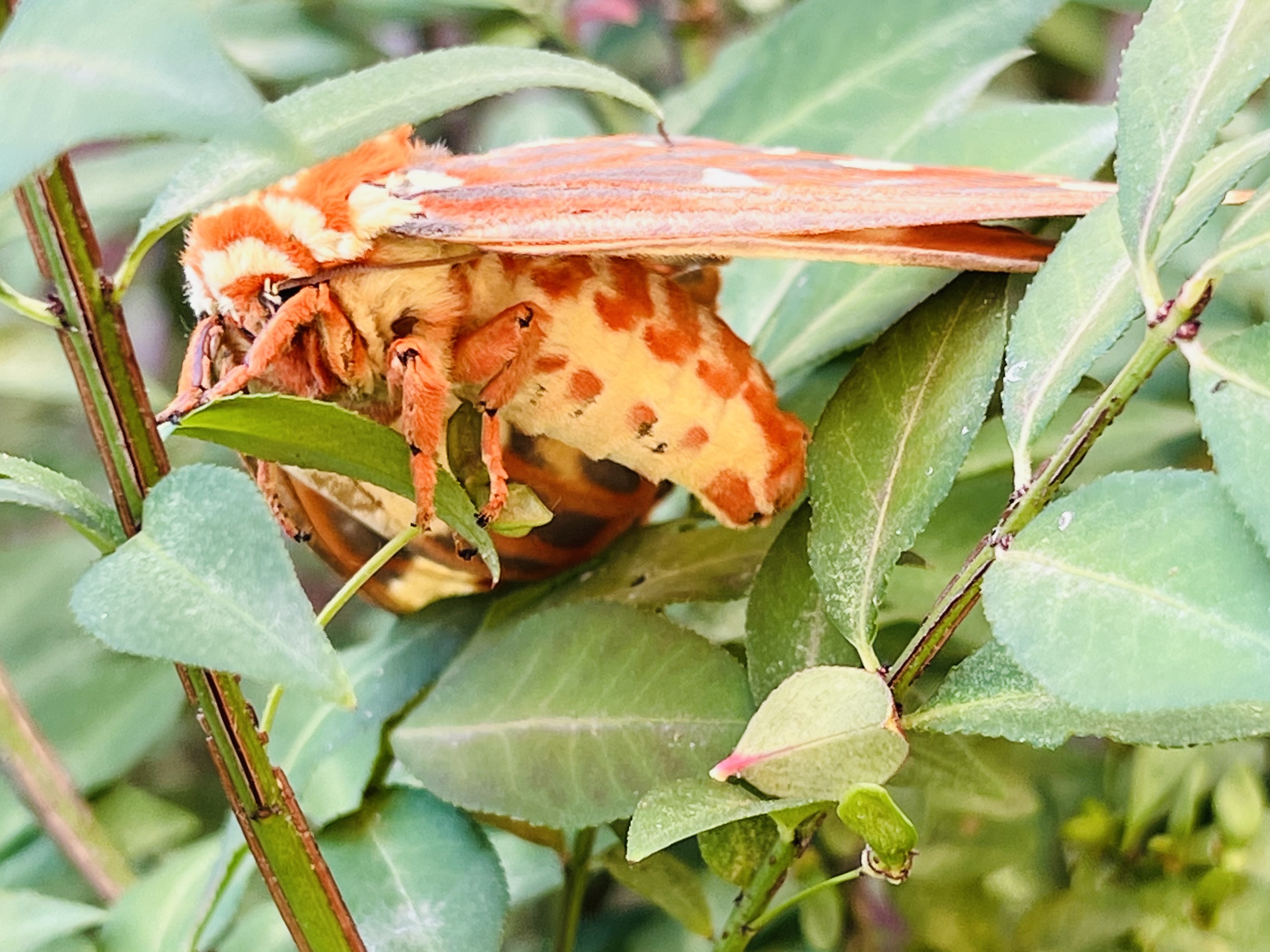 Observation notes: Very large beautiful Royal Walnut Moth found on our property located in Conway Missouri. He is super active and likes to stay on our burning bushes outside our garage.