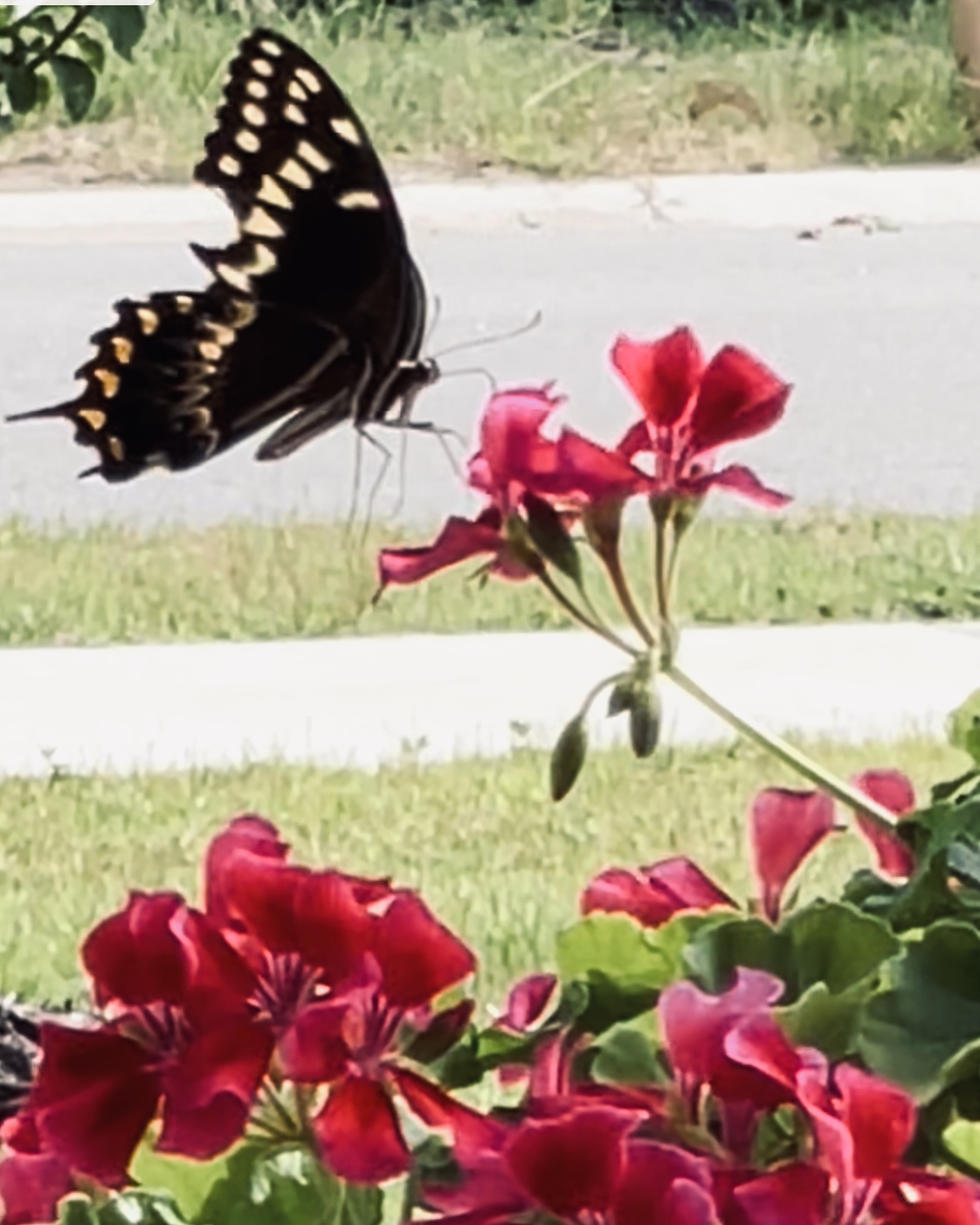 Observation notes: Today is breezy, 85 degrees in Myrtle Beach SC and I spotted this on my back patio Geranium plant. In the area, there is also a hummingbird feeder.