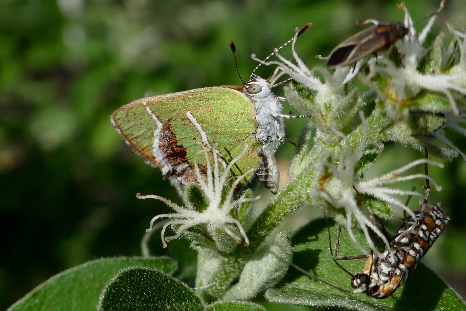 Coordinator notes: That might be the underside of Atteva aurea in the lower right of the photo.
