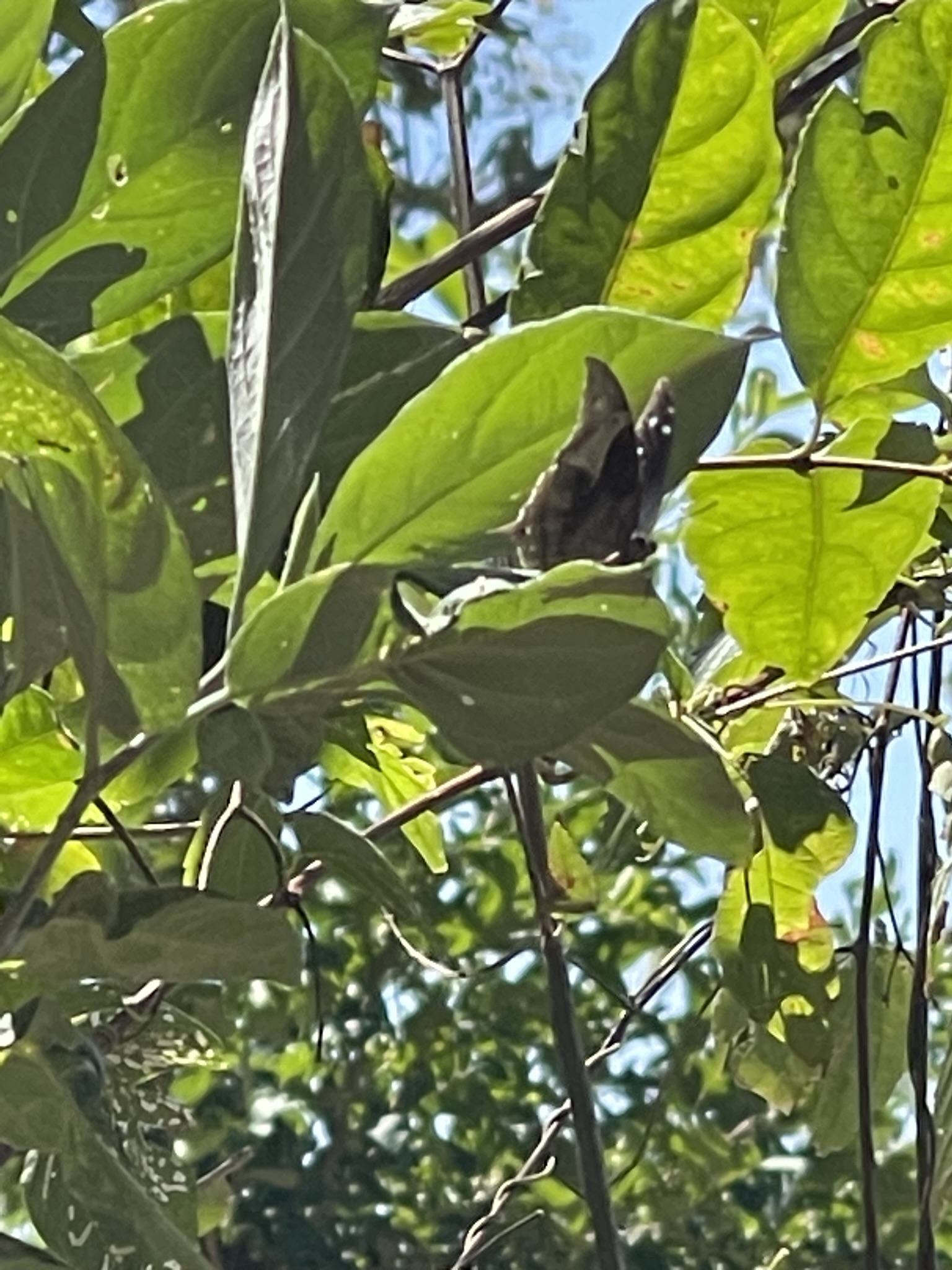 Observation notes: Near the trail to Tamaneque Falls. Sunny day in the 80’s F. ID cue is the smooth and not jagged median line of the forewing. Blue and black in flight.