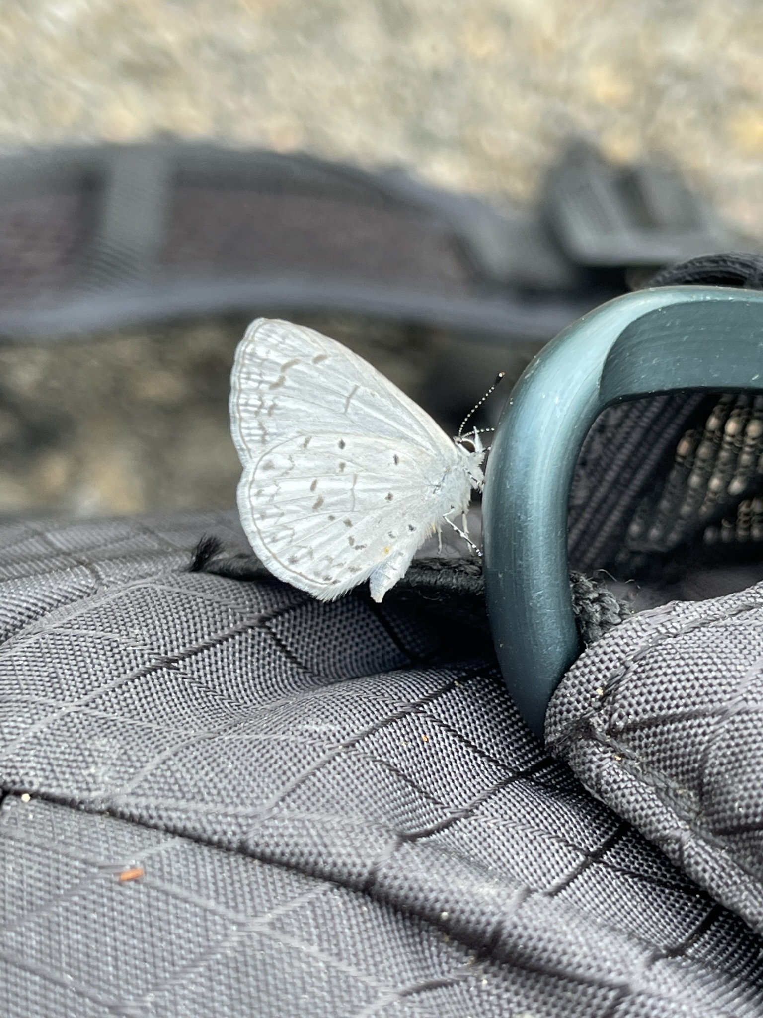 Observation notes: In El Boqueroncito crater. Cloudy day in the 70’s F. Landed on Camelback. It was attracted to peoples' sweaty clothes.