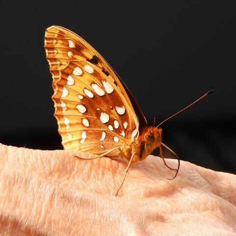 Observation notes: landed on my sister's hand - seemed to be enjoying minerals on skin