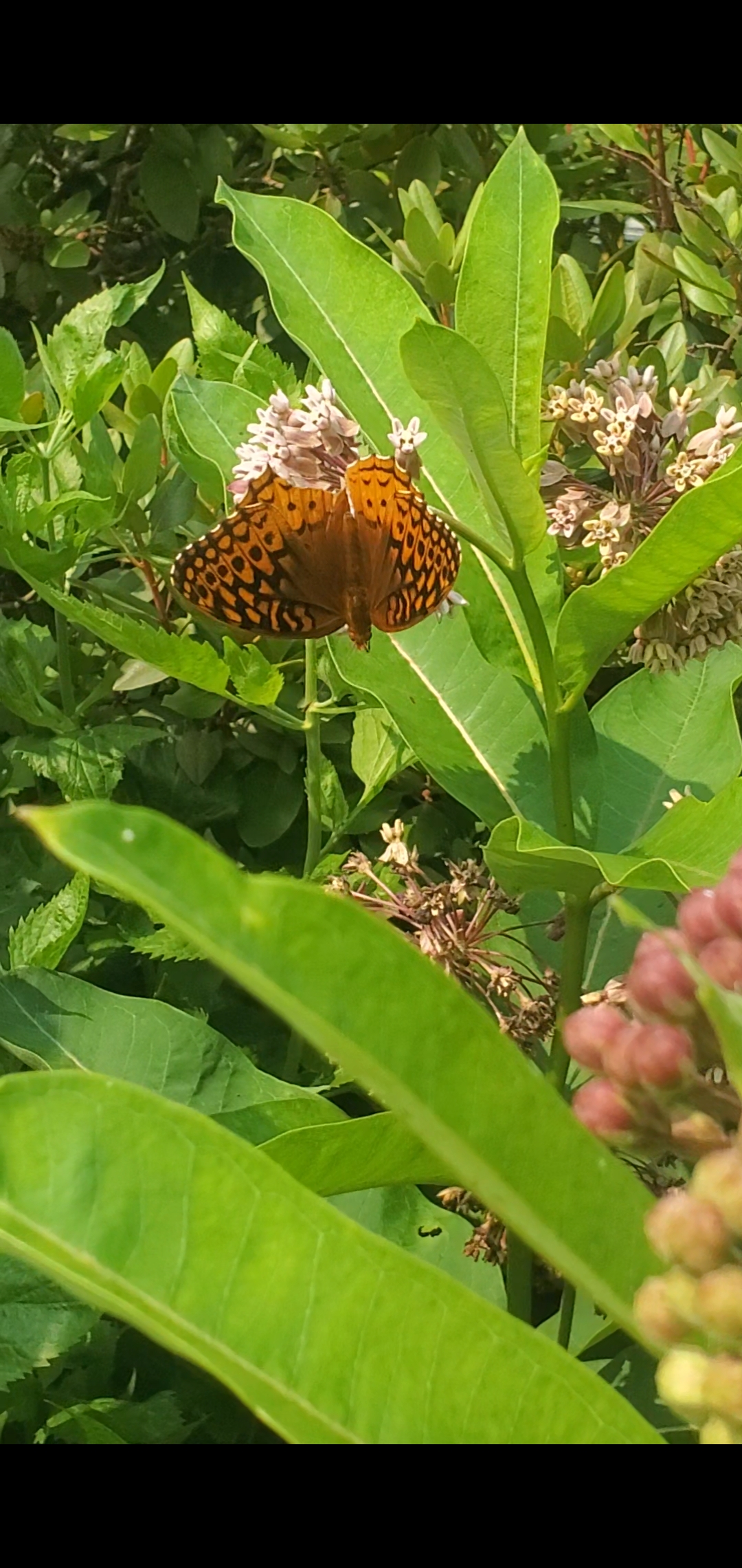 Observation notes: Very large specimen, thought it was a monarch at first. Spent lots of time eating nectar on the common milkweed.