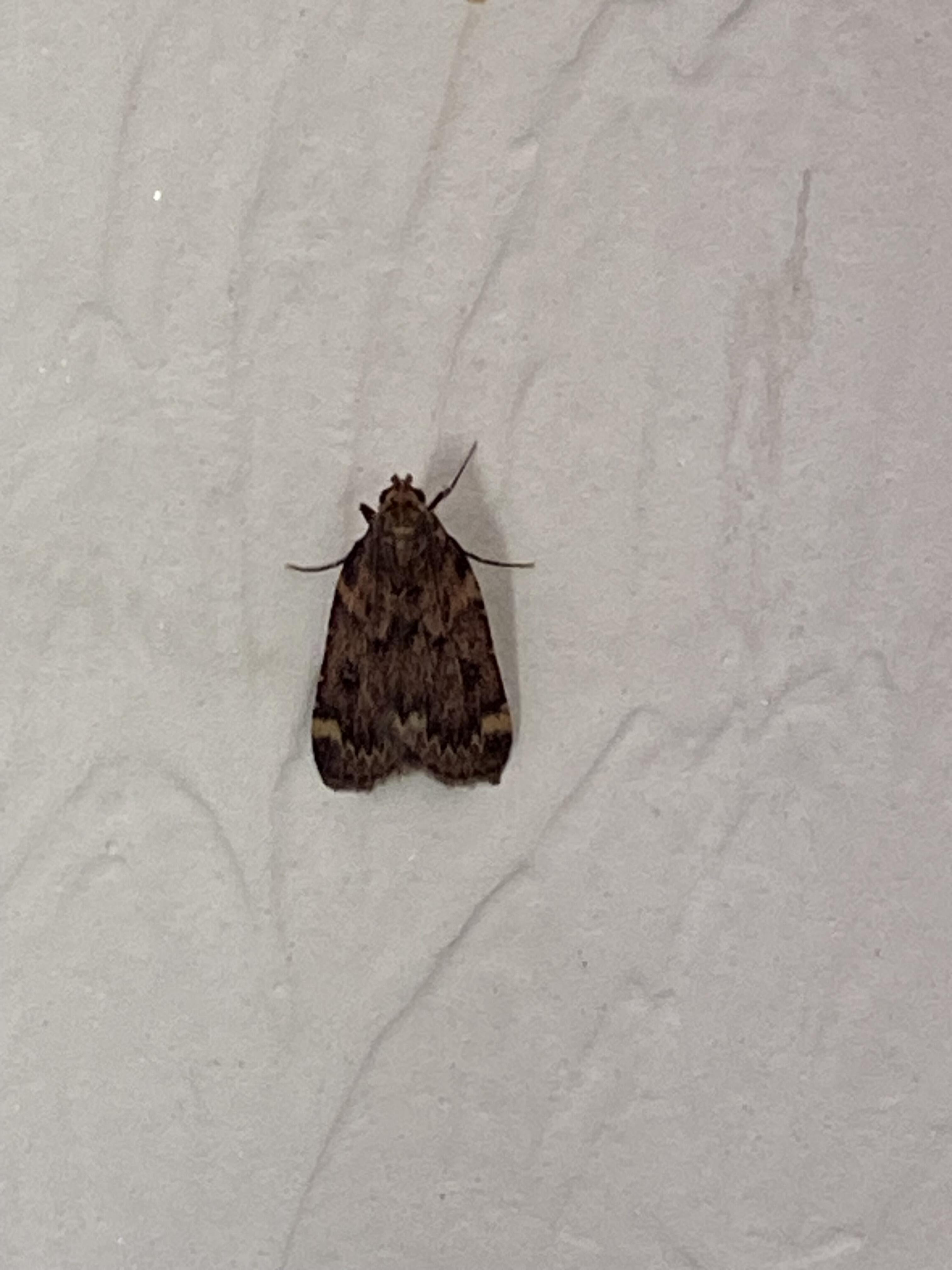 Observation notes: on wall inside of garage. Note on photos - rotate CCW 90 degrees, moth was on wall in vertical posture.