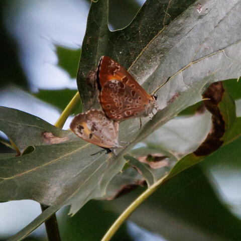 Observation notes: Two individuals met up in an Oak Tree and began copulating.