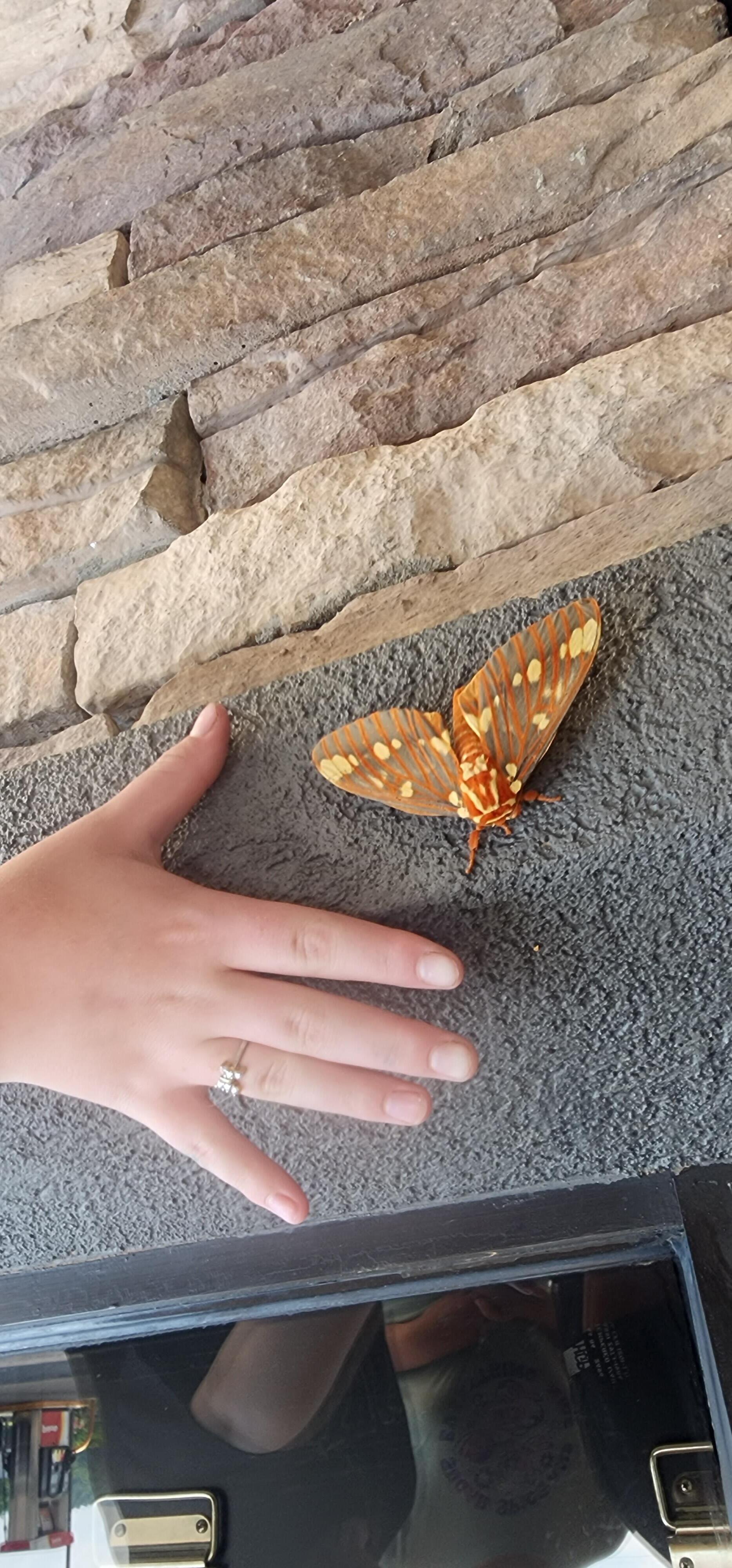 Observation notes: The poor creature was amazingly beautiful, it began to shake when we put a hand near it for size. I felt terrible to frighten it. She was quite majestic!