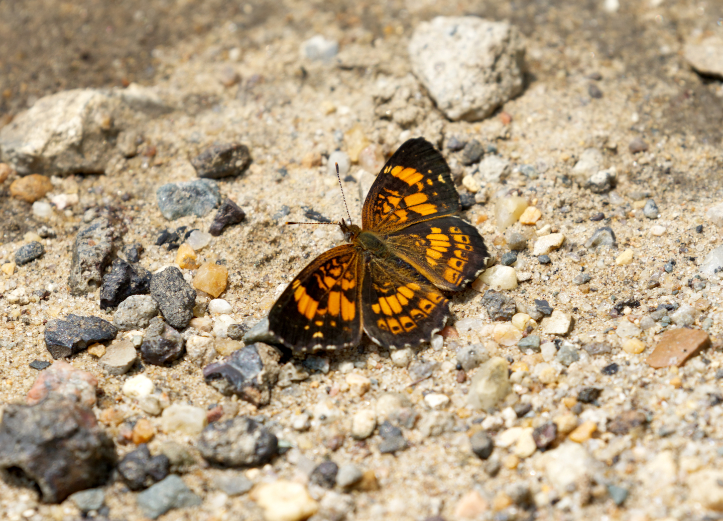 Observation notes: Sunning wings on sandy ground and moving in 1 spot around and around