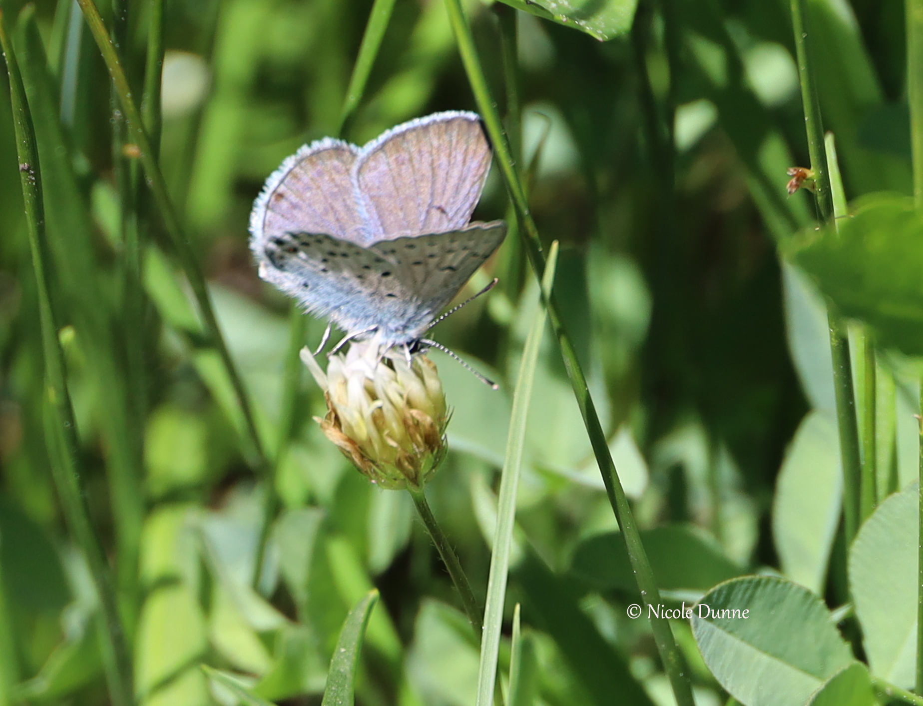 Observation notes: patrolling a patch of meadow and feeding on clover, streamside; warm sunny day with cold winds from the peak