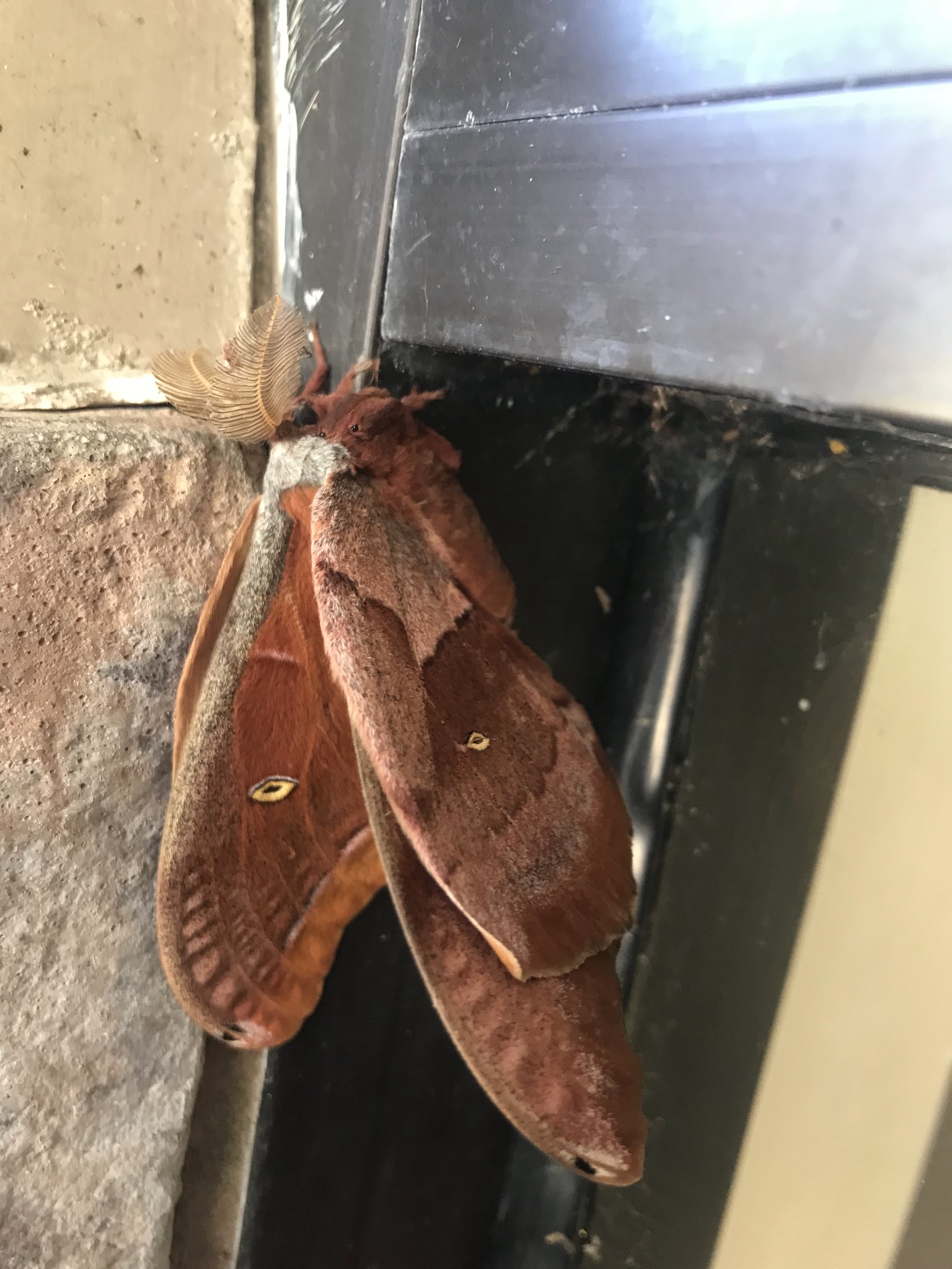 Observation notes: This moth was seen at the Community Center here where I live by one of the employees. It was on a window glass panel.