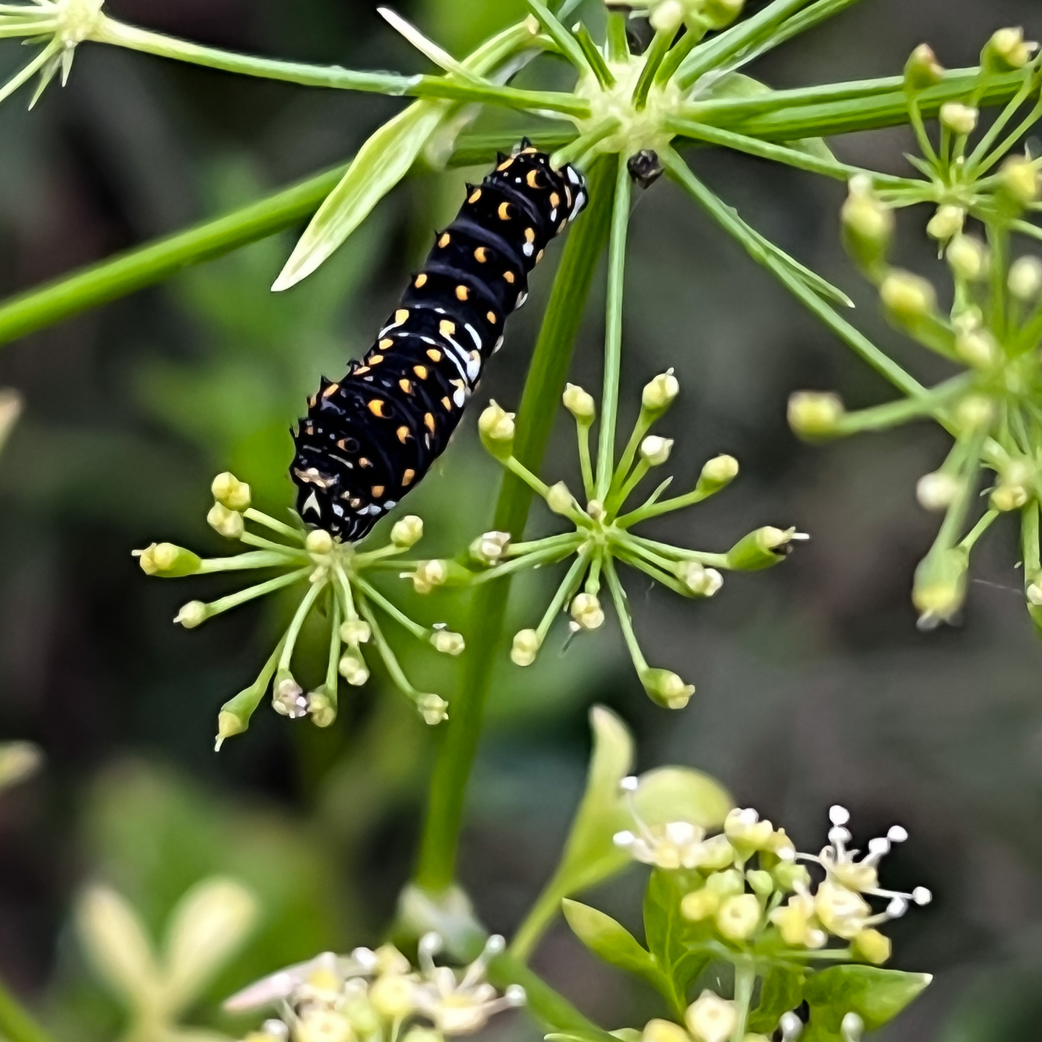 Coordinator notes: I'm raising some of these right now myself, on parsley. I set out pots of parsley which are then visited by ovipositing females, and when I see caterpillars I set the pots into a cage so they're safe from predators. They overwinter as pupae in my barn (important to keep them cold so they don't eclose (emerge) until the right time (usually late May or thereabouts).