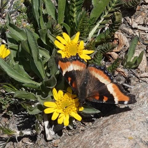 Observation notes: At least 1 dozen individuals flying along the ridgeline in alpine tundra at approx. 12,400 ft. elev. The one photographed was nectaring on a yellow-flowered composite.