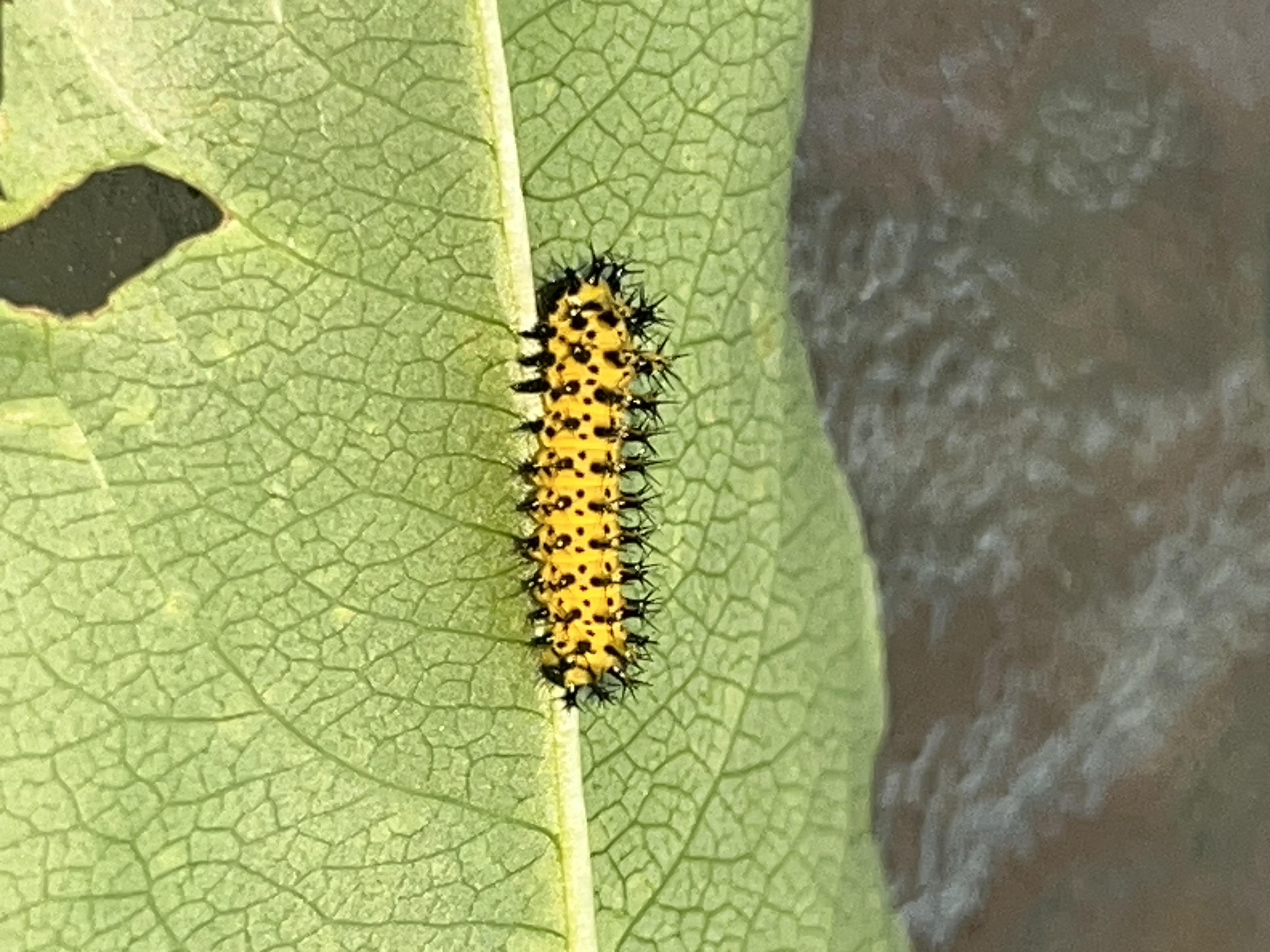 Coordinator notes: Second instar. The first three instars are yellow in this species before turning the classic green in later (4th and 5th) instars.