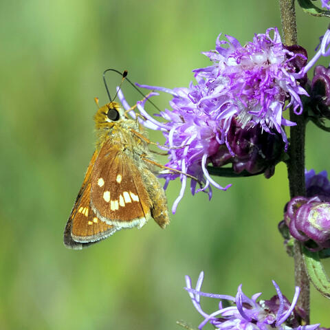 Observation notes: Photographed six individuals, one in this field, and the others widely spread along the pipeline corridor to the south between 122nd Ave and 120th Ave. All were nectaring on blazing star.